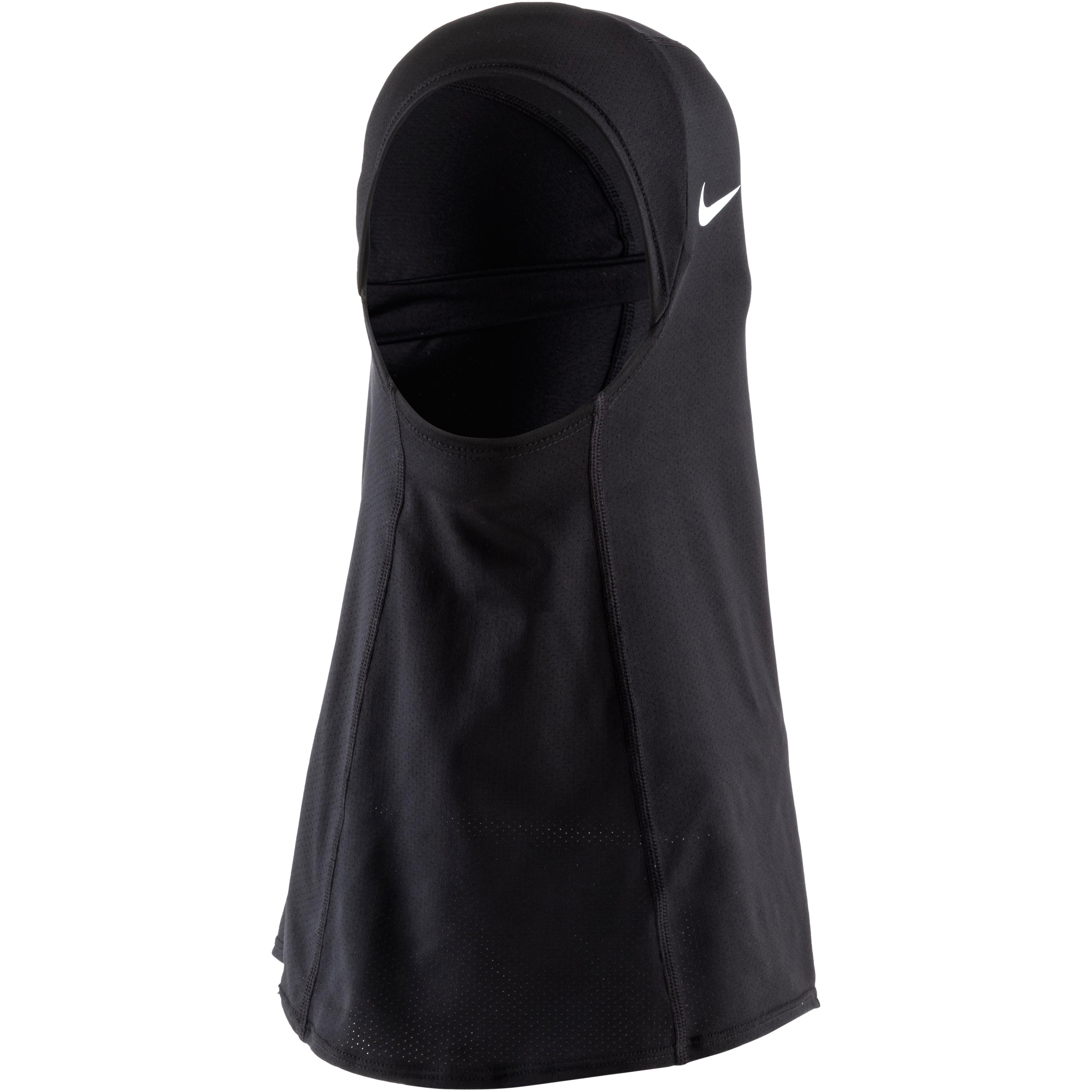 Hijab aus atmungsaktivem, schweißableitendem Meshgewebe, mit Dri-FIT-Technologie, bewirkt durch hohen Feuchtigkeitstransport ein angenehm trockenes Tragegefühl; Befestigungsschlaufe sorgt für rutschsicheren Sitz; Material 92% Polyester, 8% Elastan.