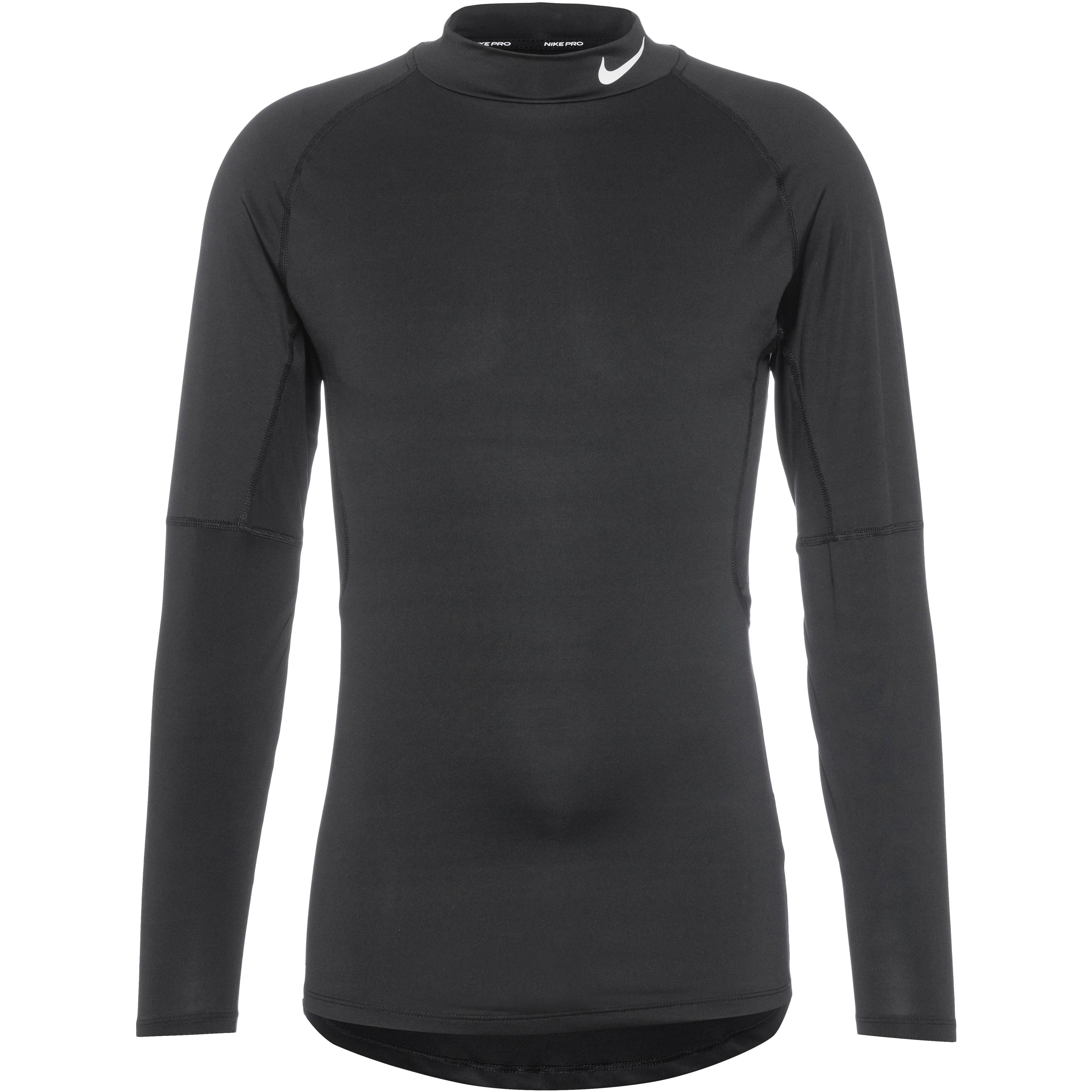 Enganliegendes Funktionsshirt aus elastischem Gewebe, mit feuchtigkeitsableitender, schnelltrocknender und atmungsaktiver Dri-FIT-Funktion; Stehkragen mit Logoprint; Raglanärmel für optimale Bewegungsfreiheit; flache, reibungsarme Nähte; umweltfreundlich im Rahmen des Nike Move to Zero-Projekts hergestellt; Material 90% Polyester, 10% Elastan.