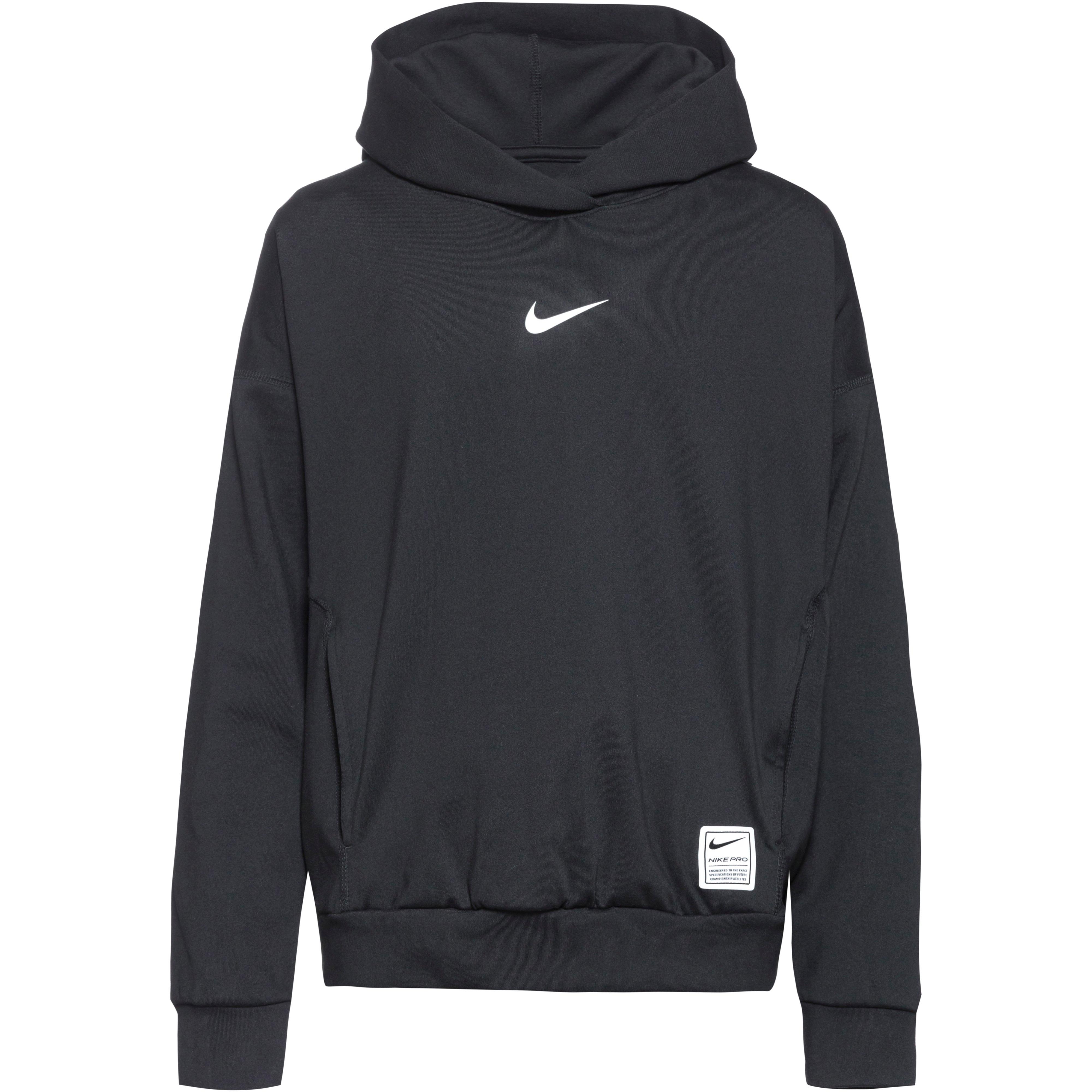 Klassisch geschnittener Hoodie für Kinder; feuchtigkeitsregulierend, schnelltrocknend und atmungsaktiv dank Dri-FIT-Technologie; Kapuze; Swoosh-Logo auf der Front; seitliche Eingriffstaschen; umweltfreundlich im Rahmen des Nike Move to Zero-Projekts hergestellt; Material I 90% Polyester, 10% Elastan, Material II 100% Polyester.