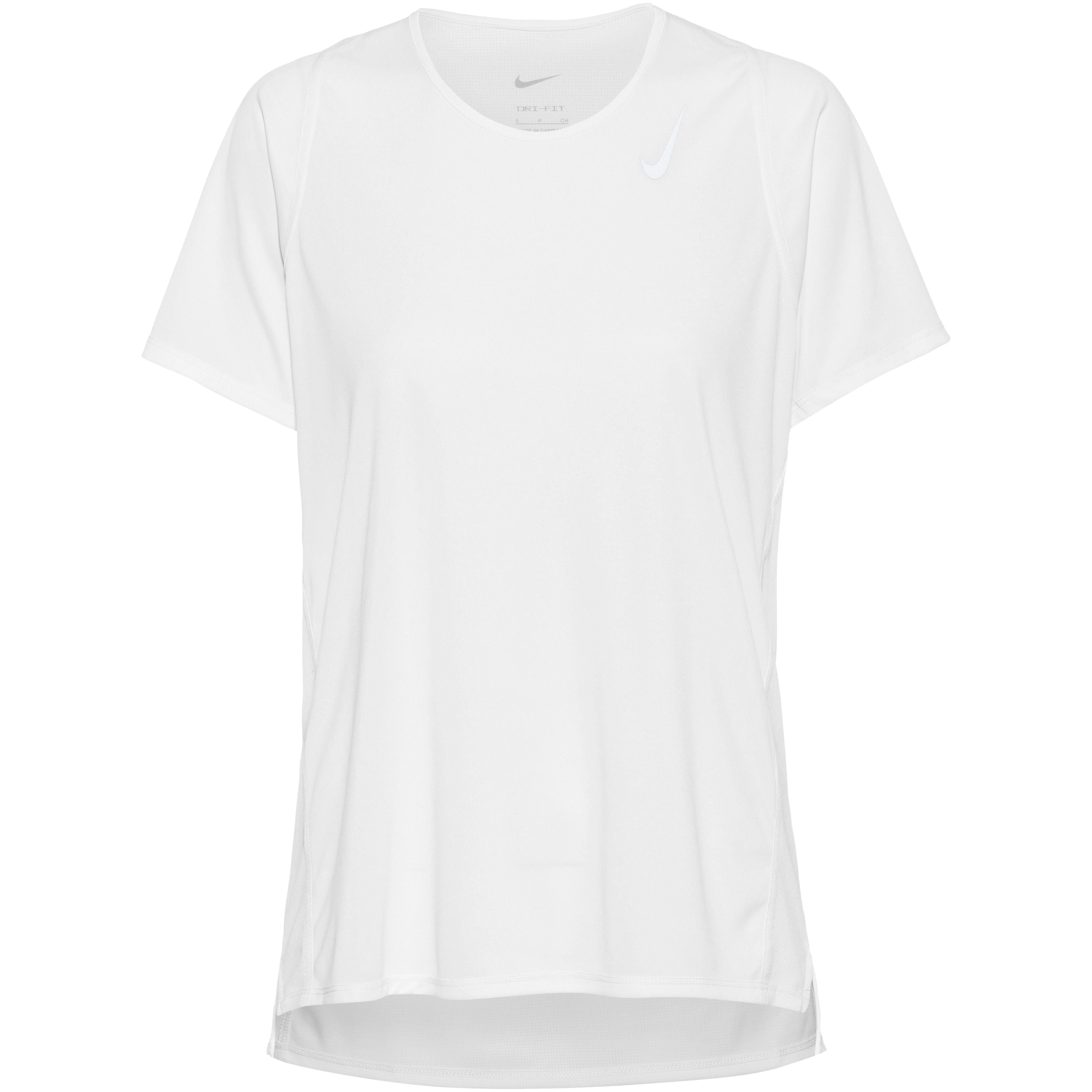 Kurzärmeliges Funktionsshirt mit feuchtigkeitsableitender und schnelltrocknender Dri-FIT-Funktion; Rundhalsausschnitt; reflektierende Elemente; seitliche Schlitze; Meshgewebe im Rückenbereich für angenehme Ventilation und trockener Tragekomfort; leicht verlängertes und abgerundetes Rückenteil; Recyclingmaterial; Move to Zero ist ein Projekt von Nike mit dem Ziel, den CO2-Ausstoß und den Abfall auf Null zu reduzieren; Material 100% Polyester.