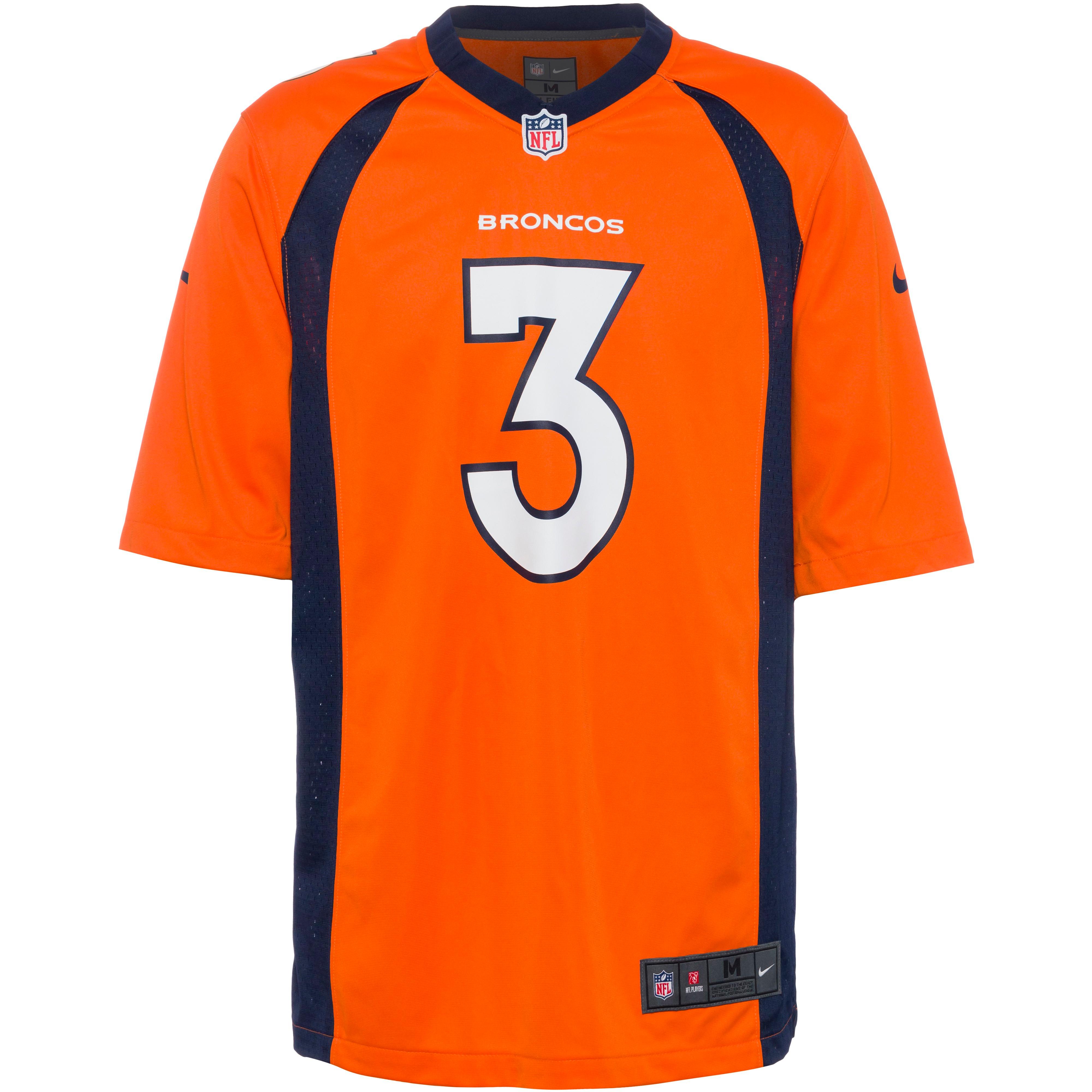 Loose Fit geschnittenes Fan Trikot von Denver Broncos Superstar Russell Wilson, mit Spielernummer auf der Front; V-Ausschnitt; Mesheinsätze für angenehme Luftzirkulation; seitlich geschlitzter Saum sorgt für mehr Bewegungsfreiheit; Material 100% Polyester.