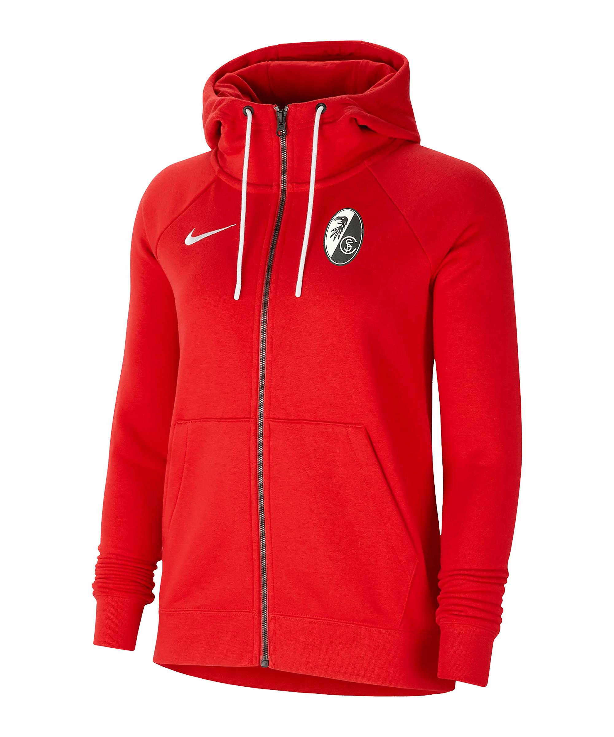 Zeige deine Zugehörigkeit zu deinem Team durch das super bequeme Modell in Rot. Die Nike Damen-Jacke sorgt für wirkliche Begeisterung. In keiner Fan-Sammlung darf diese SC Freiburg-Jacke fehlen. Sie ist super bequem, leicht und wärmend. Obendrein bietet sie dir eine hohe Strapazierfähigkeit. Die seitlichen Taschen schaffen zusätzlichen Stauraum für diverse Kleinigkeiten. Ein komfortabler und einfacher Verschluss der Jacke wird durch den Reißverschluss erreicht. Sie besticht optisch mit einem Vereinswappen auf der Brust. Schutz vor Wind und schlechtem Wetter verschafft dir die Kapuze mit Kordelzug. Produktdetails: Extras: Kapuze, Kapuze mit Kordelzug, Kordelzug Langärmlig Seitliche Taschen zum Verstauen von Kleinigkeiten Eigenschaften: super bequem, leicht, wärmend Strapazierfähig Material: 80% Baumwolle, 20% Polyester