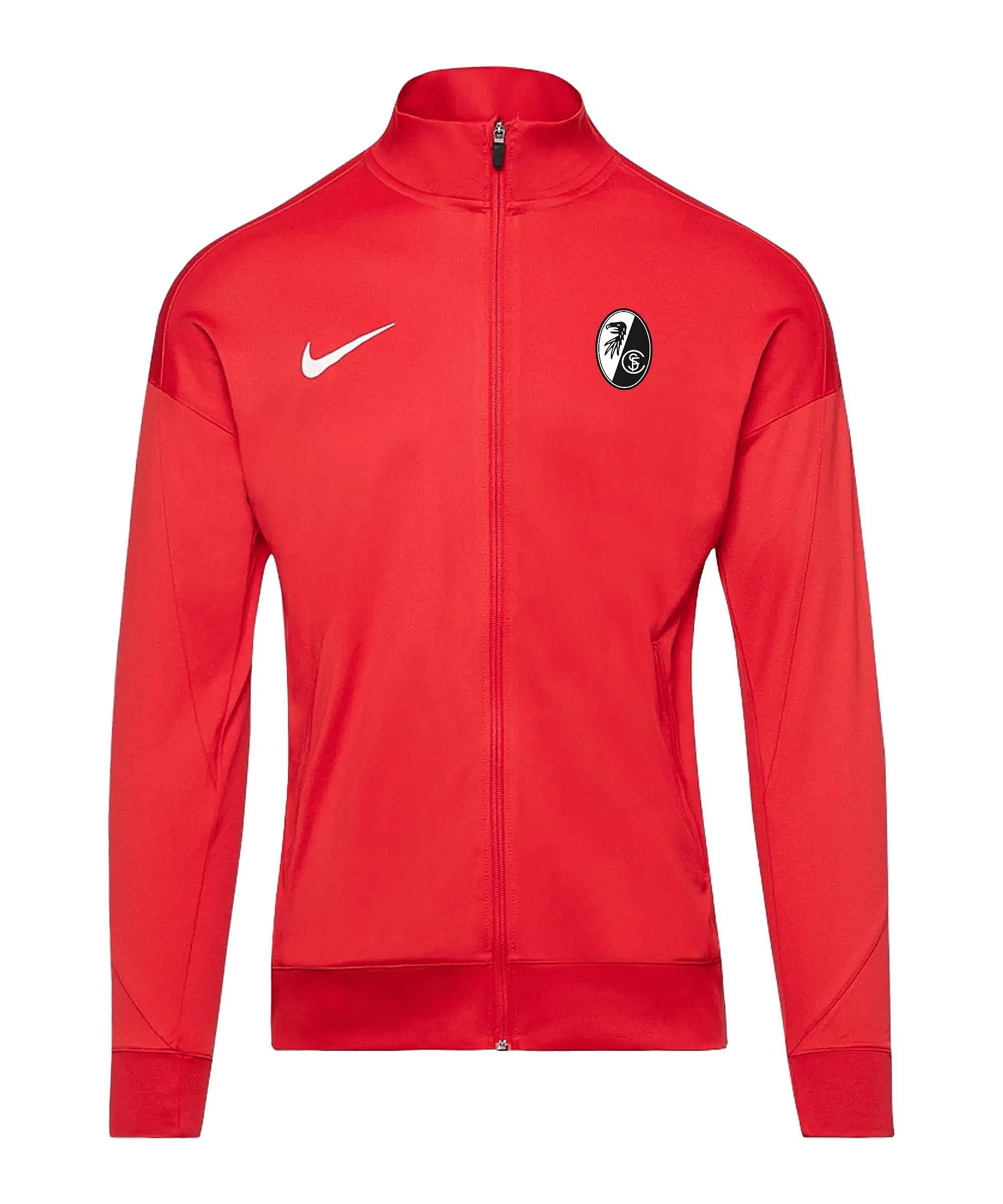 Für echte Fans – die bequeme Strike-Sportjacke in Rot begleitet dich ins Stadion, zum Public Viewing oder einfach zum Sportabend mit Freunden. Die Nike Sportjacke sorgt für wahre Begeisterung. Zeige deine Begeisterung – mit dieser SC Freiburg-Sportjacke erweiterst du deine Fan-Sammlung um ein Kleidungsstück im Original-Design. Sie ist atmungsaktiv und super bequem. Du bekommst eine hohe Strapazierfähigkeit geboten. Bei dieser Trainingsjacke wird der Verschluss mittels Reißverschlusses sichergestellt. Produktdetails: Ärmellänge: Langärmlig Ausschnitt: Stehkragen Eigenschaften: atmungsaktiv, super bequem Strapazierfähig Material: 100% Polyester