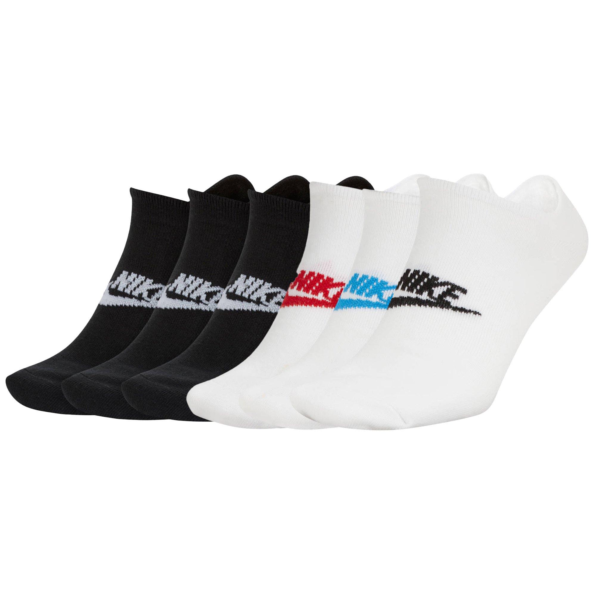 Sportsocken für Damen und Herren von der Marke NIKE im praktischen 6er Pack. Sneakersocken mit Fußgewölbeband und Dri-FIT Technologie. Einfarbige Socken mit Markentypischen Logo auf dem Fußrücken.