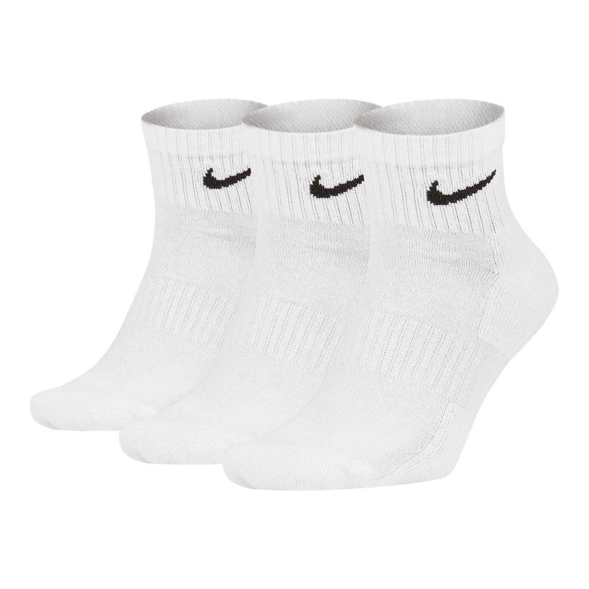 Socken für Damen und Herren von der Marke NIKE im praktischen 3er Pack. Sportsocken mit gepolsterter Sohle und Dry-Fit Technologie. Einfarbige Socken mit markentypischen Logo am Sockenrand. Angenehmer Tragekomfort im Alltag.