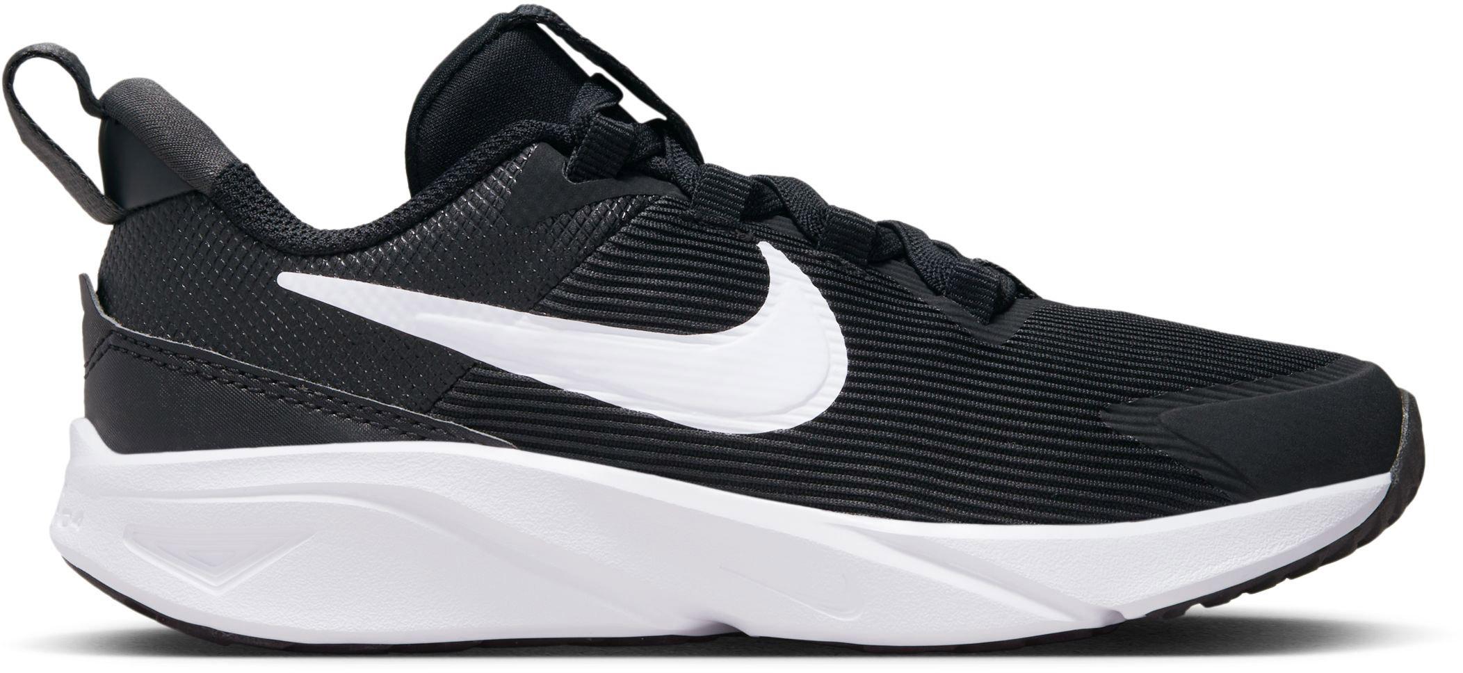 Laufschuhe mit elastischen Schnürsenkeln und dehnbarer Öffnung zum Hineinschlüpfen; Obermaterial aus atmungsaktivem Mesh mit strapazierfähigen Synthetik-Überzügen; Zuglasche an der Ferse; seitliches Swoosh-Logo; Textilfutter; weiche Schaumstoff-Mittelsohle; profilierte Gummi-Außensohle.
