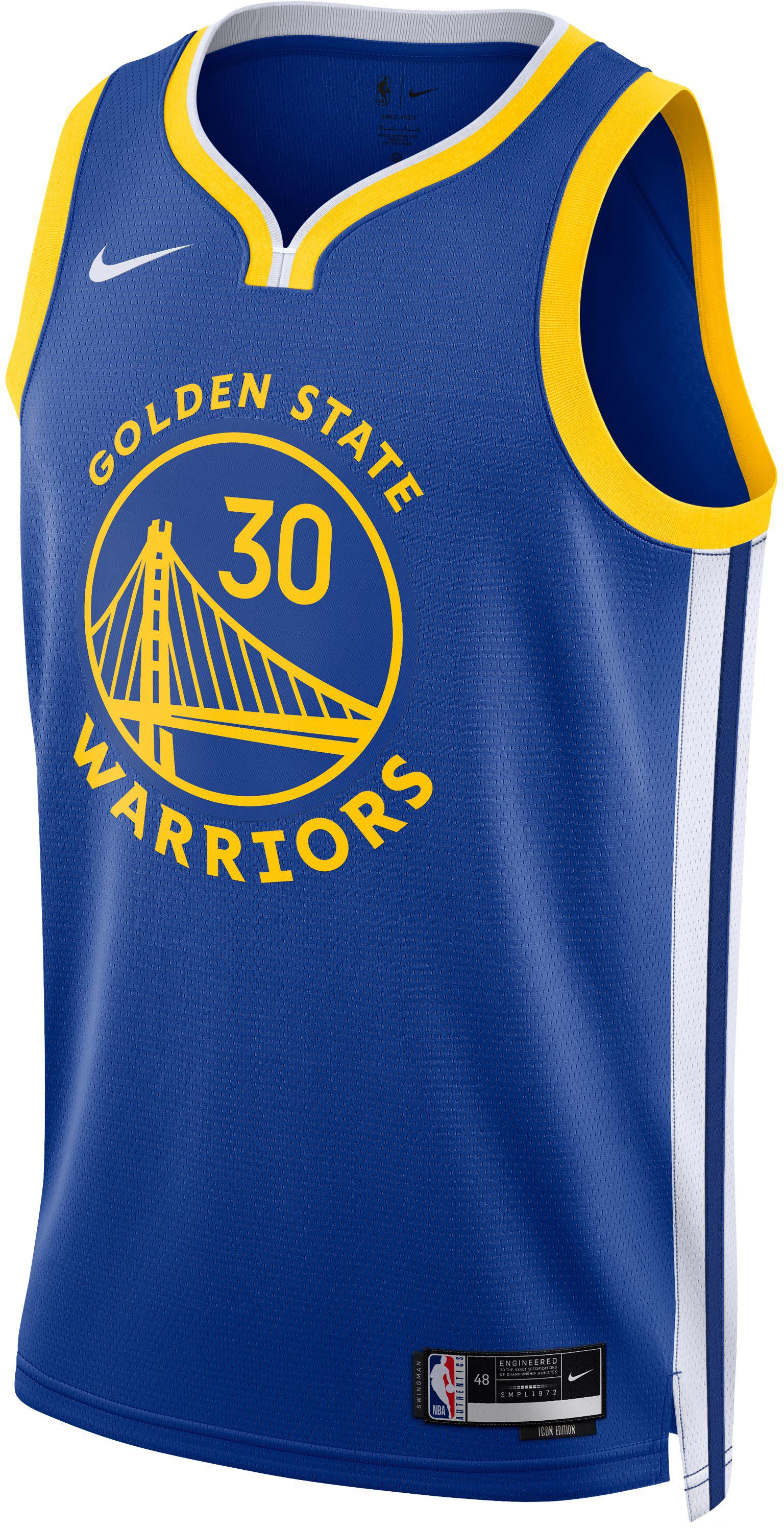 Ärmelloses Basketball-Trikot mit der Spielernummer und Namensschriftzug von Stephen Curry auf der Rückseite; gerundeter V-Ausschnitt; Swoosh-Logo, Logo der Golden State Warriors auf der Vorderseite; NBA-Patch, Streifen an der Seite; verlängertes Rückenteil; Seitenschlitze; feuchtigkeitsregulierend und schnelltrocknend dank Dri-FIT-Technologie; Material 100% Polyester.