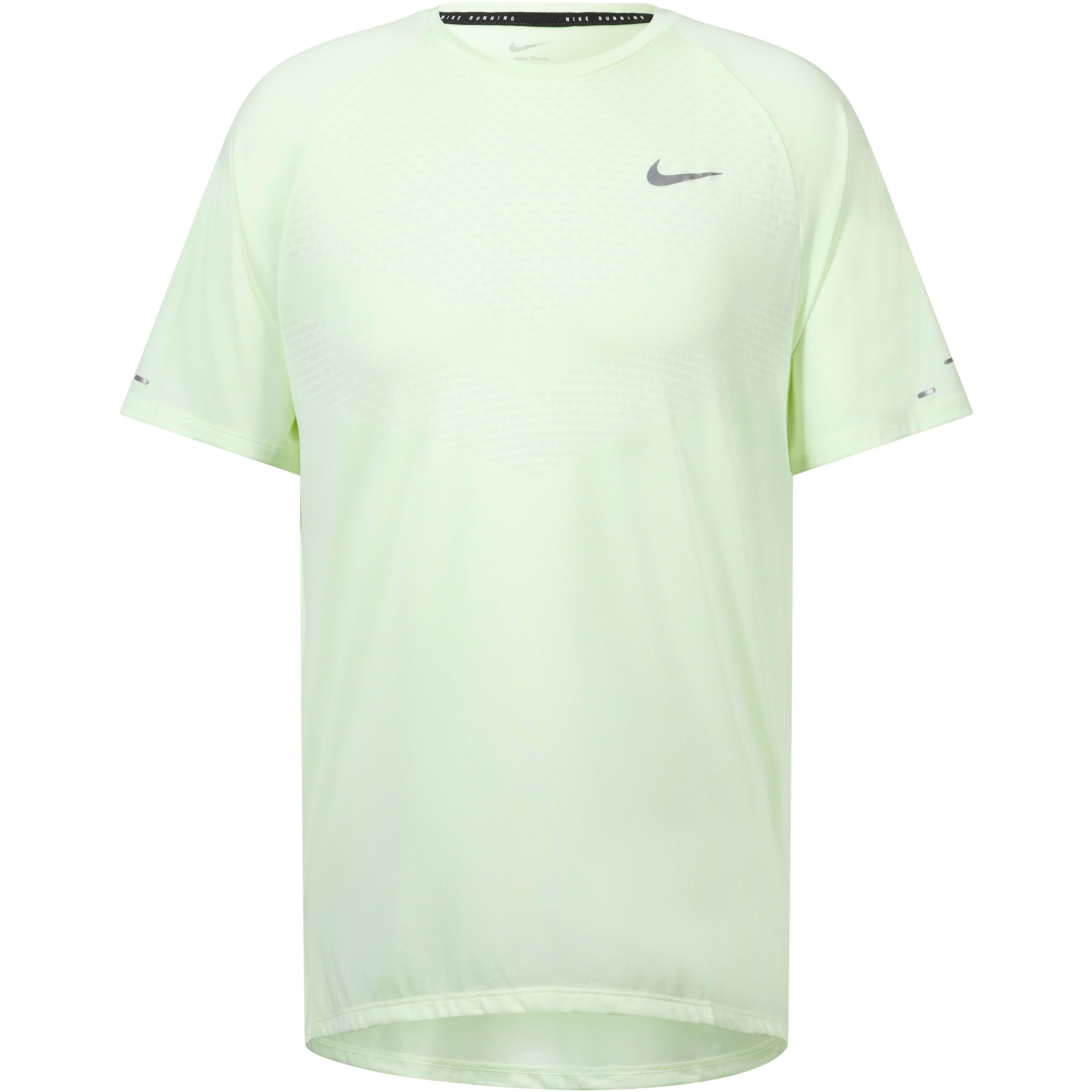 Leichtes Funktionsshirt mit Rundhalsausschnitt und kurzen Ärmeln; atmungsaktiv, feuchtigkeitsregulierend und schnelltrocknend dank Dri-FIT-ADV-Technologie mit strategischen Belüftungszonen für angenehm kühlen und trockenen Tragekomfort; seitlich geschlitzter Saum; reflektierende Elemente; Material 100% Polyester (recycelt).