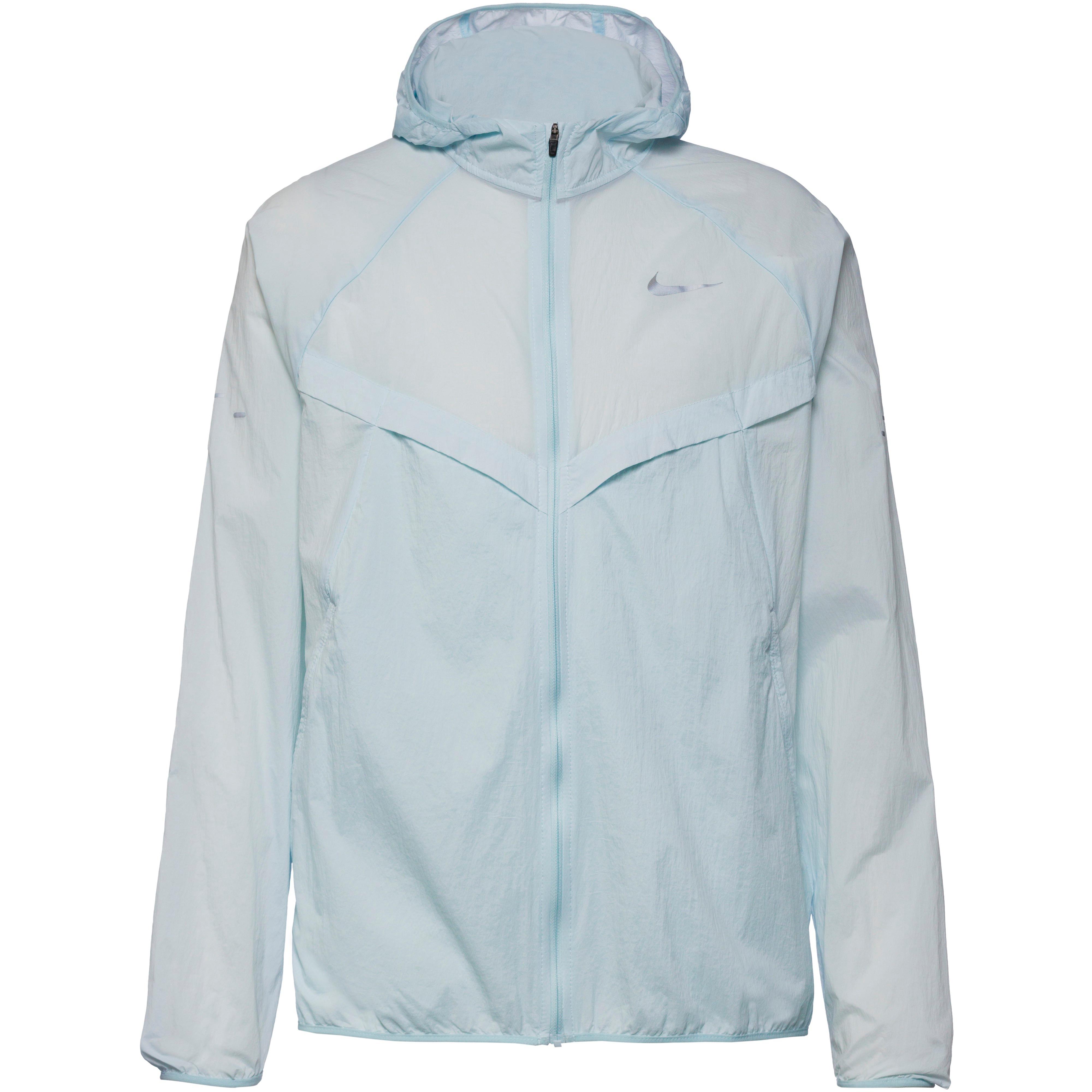 Laufjacke aus leichtem Gewebe, mit wasserabweisender Imprägnierung; Kapuze; Kragen mit Kinnschutz; die Raglanärmel sorgen für optimale Bewegungsfreiheit bei allen Aktivitäten; 2 Fronttaschen mit Reißverschlüssen; geringes Packmaß, Jacke lässt sich in der integrierten Meshtasche verstauen; reflektierende Elemente; Markendetail; umweltfreundlich im Rahmen des Nike Move to Zero-Projekts hergestellt; Material I 100% Polyamid, Material II 100% Polyester.