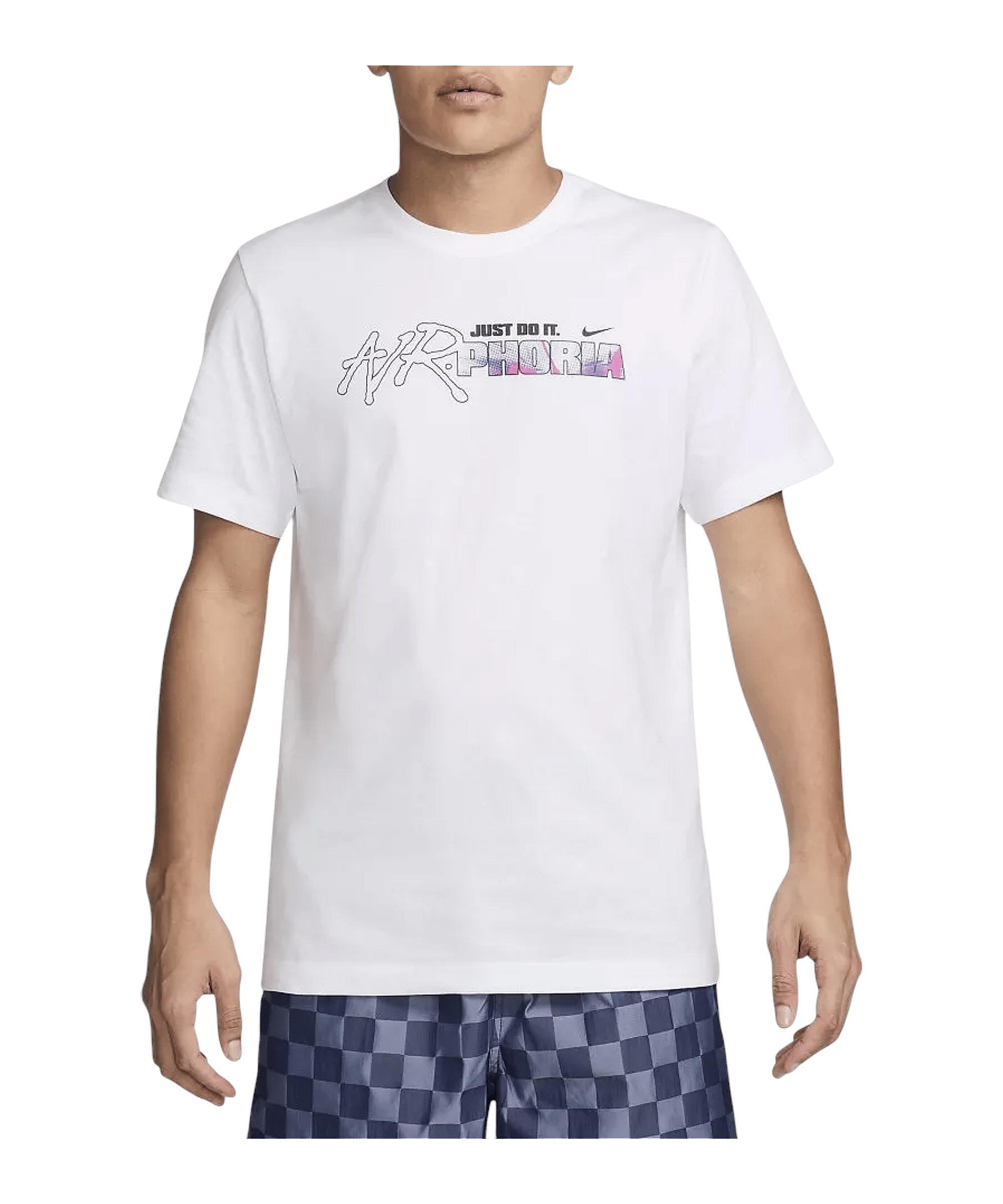 Das atmungsaktive Modell in Weiß kleidet dich für den Alltag bestens ein. Nike veröffentlicht mit dem Shirt ein absolut einmaliges Produkt. Die leichte, super bequeme und atmungsaktive Funktionsweise lässt es überzeugen. Dieses wunderbare Modell des 1971 gegründeten und international führenden Sportartikelanbieter mit dem Swoosh weiß absolut zu begeistern. Die tolle Optik dieses Oberteils wird unterstützt durch ein Grafikelement auf dem Rücken, einen Schriftzug auf dem Rücken, einen Schriftzug auf der Brust. Mit dem Herren-Oberteil bist du in deiner Freizeit stets modern unterwegs. Produktdetails: Kurzärmelig Eigenschaften: atmungsaktiv, leicht, super bequem Material: 100% Baumwolle