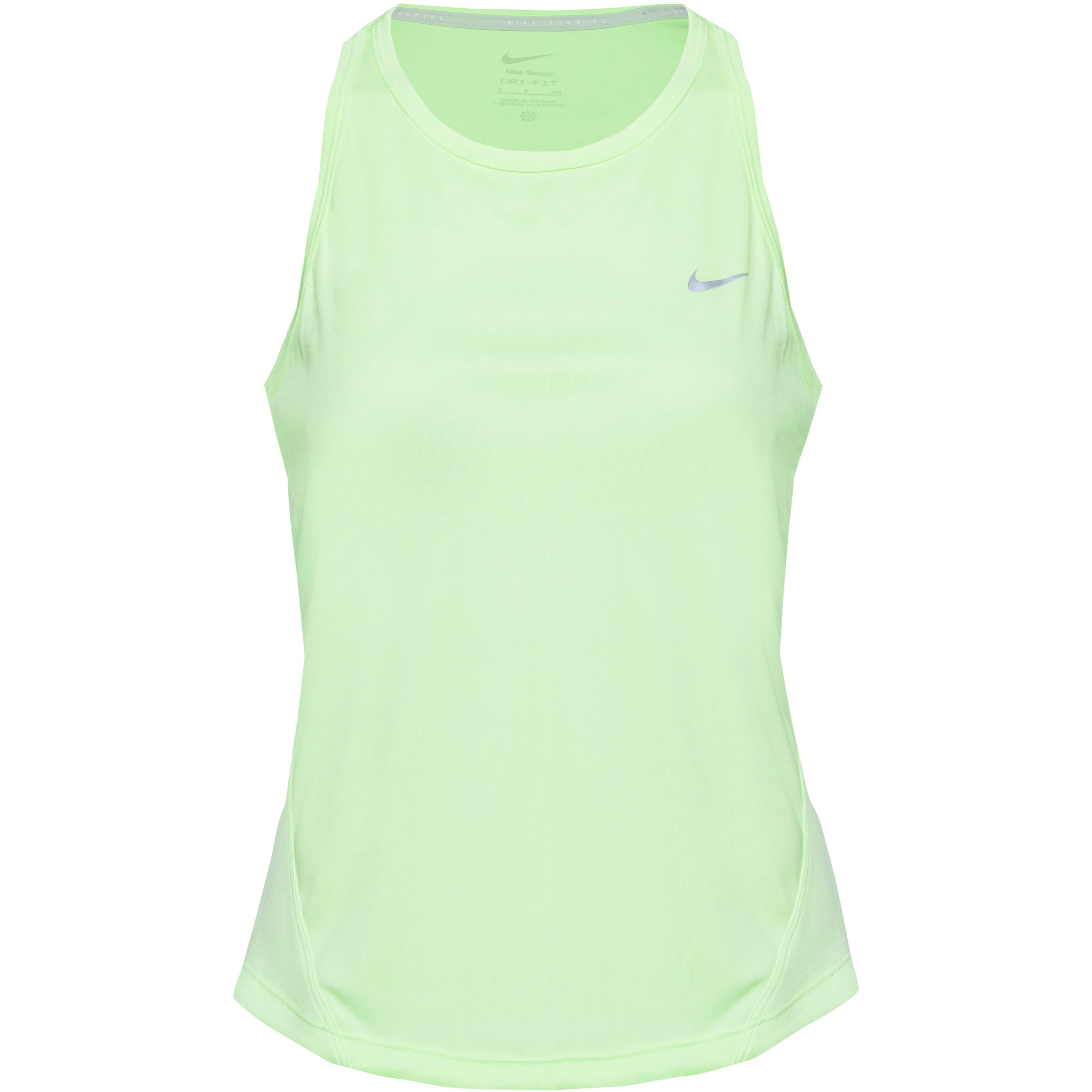 Lauf-Tanktop mit feuchtigkeitsregulierender, schnelltrocknender und atmungsaktiver Dri-FIT-Technologie; Rundhalsausschnitt und Ringerrücken; Mesh-Einsätze unter den Armen; reflektierender Logoprint auf Brusthöhe; abgerundeter Saum; Material 100% Polyester.