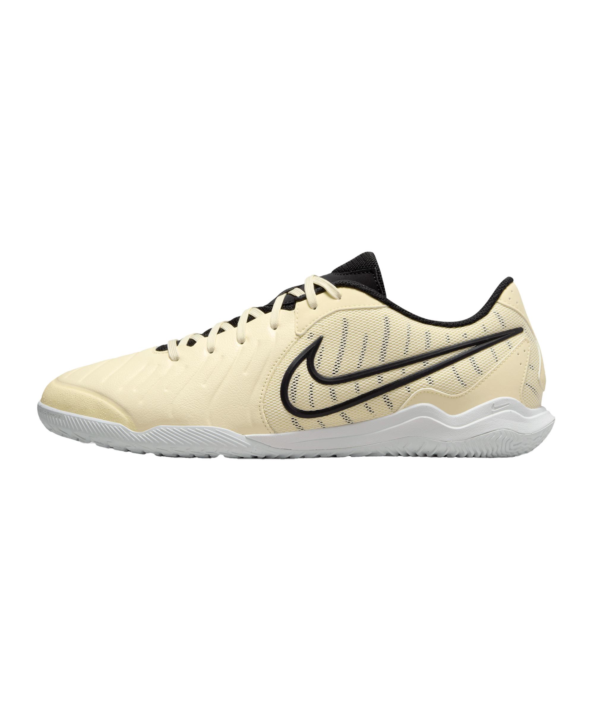 Der flach geschnittene Nike Tiempo Legend X Academy IC ist ein bequemer und feinfuuml;hliger Fuszlig;ballschuh fuuml;r Mauml;nner und Frauen. Die Nike Hallenfuszlig;ballschuh sind geeignet fuuml;r Indoorbelauml;ge und Hallenboden. Schauen wir uns die Boots mal von oben bis unten an: Nike Tiempo 10 aus dem Max Voltage Pack Dieser Colorway elektrisiert bis in die Haarspitzen. Das vibrierende Neongelb springt fouml;rmlich ins Auge und macht definitiv Eindruck. Wenn du gerne Fuszlig;ballschuhe mit Eyecatcher-Faktor und Statement-Qualitauml;ten trauml;gst, ist der Nike Max Voltage Pack fuuml;r die Ruuml;ckrunde 2025 ganz klar einen Blick wert. Nike Spieler-Fuszlig;ballschuh fuuml;r Erwachsene Das Tiempo Midrange-Modell in Erwachsenen-Grouml;szlig;en ist interessant fuuml;r kreative Spieler-Typen, die Komfort schauml;tzen. Mit dem Nike Tiempo Legend 10 Academy holst du dir gute Features zu einem interessanten Preis an deine Fuuml;szlig;e. Schouml;nesnbsp;Fit amp; Feel Fuuml;r uuml;berzeugende Performance und schouml;ne Passform hat Nike das Upper des Nike Academy-Modells entsprechend gestaltet: Das von Nike selbst entwickelte FlyTouch Synthetikleder (hier in der Lite-Version), Micro Dots auf der Innenristflauml;che fuuml;r tollen extra Touch und das overall ziemlich uuml;berzeugende, geschmeidig weiche Lederfuszlig;ballschuh-Feeling, das spuuml;rbar uuml;ber dem Niveau eines Fuszlig;ballschuhs unter der 100-Euro-Marke liegt, machen diesen Nike Tiempo Fuszlig;ballschuh fuuml;r Erwachsene zur gefragtem Option. Mit Indoor Court-Sohle Mit der Hallensohle fuuml;r Indoorbelauml;ge und Hallenboden setzt du dein technisch feines Spiel schouml;n um. Die Nike Hallensohle aus Gummi ist leicht und vielseitig ndash; mit gerade richtig dauml;mpfender Mittelsohle fuuml;r schouml;nes direktes Feedback und abriebfestem (Non Marking) Hallenprofil in spannendem Tiempo-Design. Mach ihn unique mit Schriftzug und Emojis Ob Vorname, Initialen, Ruuml;ckennummer oder dein Lieblingswortnbsp;kombiniert mit coolem Icon.nbsp;Mit der zusauml;tzlichen 11teamsportsnbsp;CREATE YOUR OWN Optionnbsp;machst du deine Fuszlig;ballschuhe zum ganz persouml;nlichen Unikatnbsp; - mit bis zu 8 Zeichen und wauml;hlbarer Schrift und Farbe. Und es geht ganz easy: Grouml;szlig;e auswauml;hlen Auf Deine Personalisierung klicken Wie gewuuml;nscht konfigurieren In den Warenkorb legen Produktdetails: Typ: Nike Hallenfuszlig;ballschuhe Linie: Tiempo Modell: Legend 10 Preisstufe: Midrange-Modell Grouml;szlig;en: fuuml;r Erwachsene Sohle: IC (Indoor Court) Einsatzbereich: fuuml;r Indoorbelauml;ge und Hallenboden Kragenschnitt: flach (Low Cut) Material: Nachhaltiges Produkt: mit recycelten Materialien hergestellt Obermaterial: Synthetik Innenfutter: Textil Laufsohle: Gummi