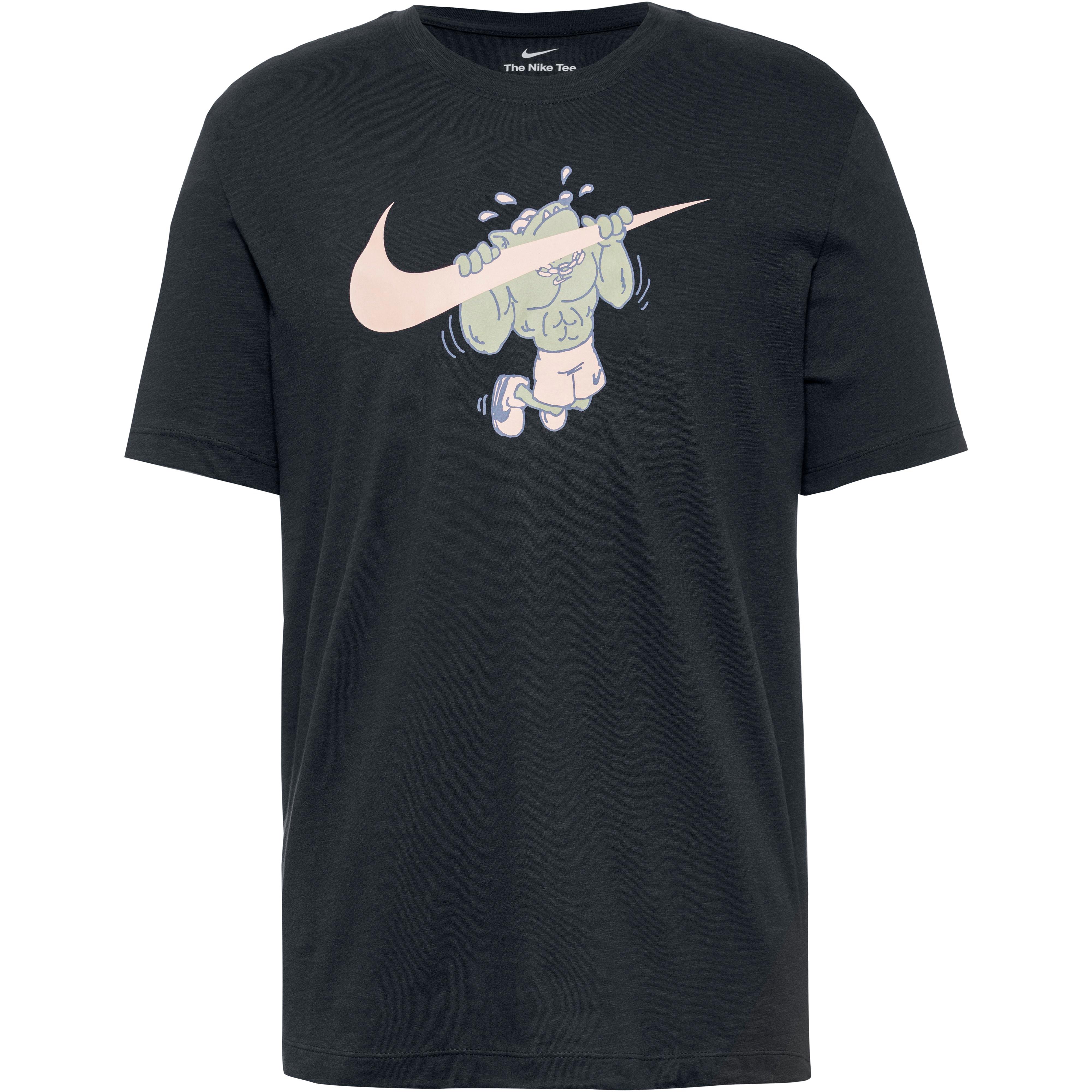 Funktionsshirt mit feuchtigkeitsableitender, schnelltrocknender und atmungsaktiver Dri-FIT-Funktion; Rundhalsausschnitt; großer Print auf der Front; Material 58% Baumwolle, 42% Polyester.