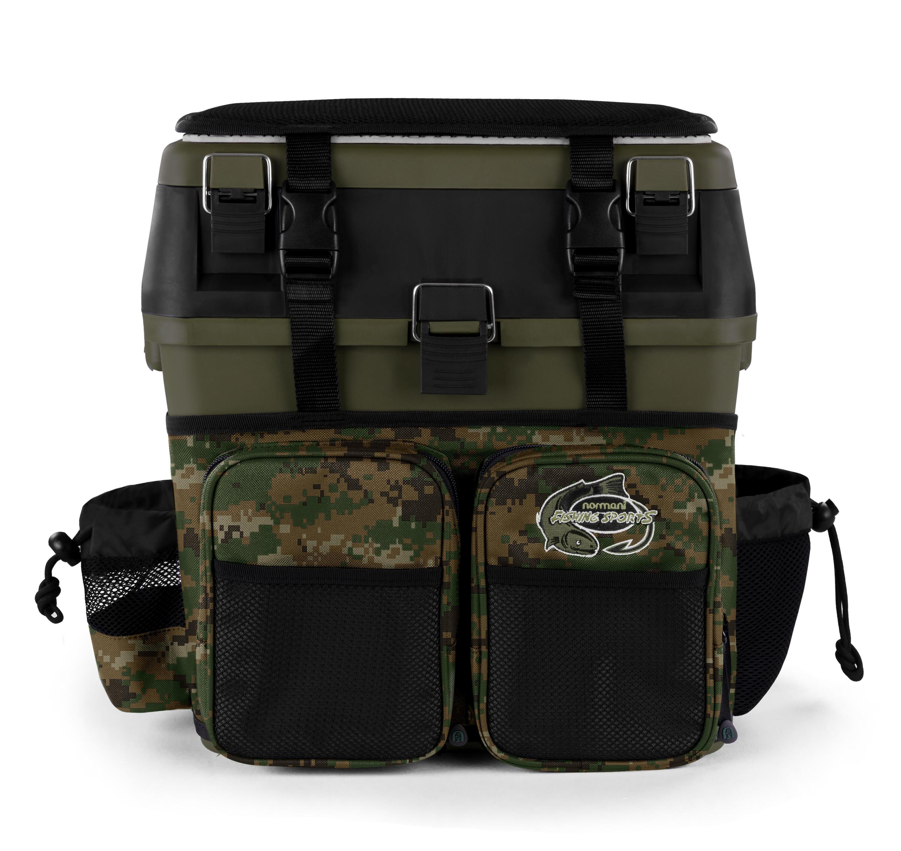 Unsere Angelbox „Bilbao“ überzeugt mit einfacher Handhabung und modernem Design als multifunktionaler Begleiter auf jeder Ihrer Angeltouren. In der Deckeloberseite sind 4 integrierte, verschließbare Kunststoffboxen, die den optimalen Stauraum für Haken, Köder, Bleie, Fischtöter, Hakenlöser, Zangen oder Messer bieten. Die Fächer im Zwischendeckel lassen sich dank eines Stecksystems individuell an die Länge Ihres Equipments anpassen. Sie können einzelne Trennwände herausnehmen und damit die Größe einzelner Fächer erweitern. Separate Halterungen für Zubehör wie Posen, stehen im Deckel ebenfalls zur Verfügung. Der individualisierbare Mittelteil lässt sich auf die eigenen Bedürfnisse anpassen. Das geräumige Hauptfach, mit einem Volumen von 22 Liter, bietet den optimalen Stauraum für Grundequipment wie Kunststoffboxen, Werkzeug, Schnurrollen, Lockfutter, sperrige Wobbler, große Weichplastikköder, Köderfischbehälter sowie eine Vorfach- oder Rollentasche. Für sicheren Transport und Aufbewahrung befinden sich 3 verschließbaren Clips an der Frontseite. Die Box besteht aus 100 % Kunststoff. Damit ist der Inhalt vor Wasser und Dreck geschützt. Mit einem Leergewicht von 2160 Gramm ist die Angelbox bestens für einen Angelausflug mit einigen Metern Fußmarsch geeignet. Weitere Aufbewahrungsmöglichkeiten bieten die 2 vorderen Außentaschen mit Reißverschluss sowie die Netztaschen links und rechts, in denen eine Trinkflasche oder weiteres Equipment griffbereit verstaut werden kann. Die langen nfs Zipper an den Außentaschen bieten guten Halt und ermöglichen auch beim Tragen von Angelhandschuhen oder nassen Händen ein leichtes Öffnen und Schließen der Reißverschlüsse. Zusätzlich bietet die Angeltasche an der Rückseite ausreichend Platz für Dokumente, Anglerschein oder Kartenmaterial. Für einen längeren, unebenen Weg zur Wasserstelle oder dem zügigen Wechsel der Angelstelle gewährleisten die gepolsterten Tragegurte sowie der abnehmbare Tragegurt einen hohen Tragekomfort um sein Tackle für das Angeln von Hecht, Zander, Aal oder Karpfen zu transportieren. Ausgedehnte Aufenthalte mit einer entspannten Sitzmöglichkeit am Ufer sind durch das integrierte Sitzpolster am Deckel gewährleistet. Die Box bietet Ihnen einen angenehmen Sitzplatz auf einer Sitzhöhe von 40 cm und sorgt mit einer maximalen Belastbarkeit von 150 kg für ausreichende Stabilität. Die Angelbox „Bilbao“ verbindet Angelrucksack, Sitzkiepe und Angelkoffer in einem Produkt. Abmessungen • 40 cm (Höhe) x 38 cm (Breite) x 26 cm (Tiefe) Hauptfach • 35 cm (Höhe) x 36 cm (Breite) x 24 cm (Tiefe) Deckel • 6 cm (Höhe) x 36 cm (Breite) x 19 cm (Tiefe) Kunststoffboxen im Deckel • 3 cm (Höhe) x 14 cm (Breite) x 7 cm (Tiefe) Fronttaschen • 20 cm (Höhe) x 16 cm (Breite) x 5 cm (Tiefe) Rückentasche • 18 cm (Höhe) x 32 cm (Breite) Gewicht • 2160 g Material Box: • 100% Kunststoff Material Bezug: • 100% Polyester
