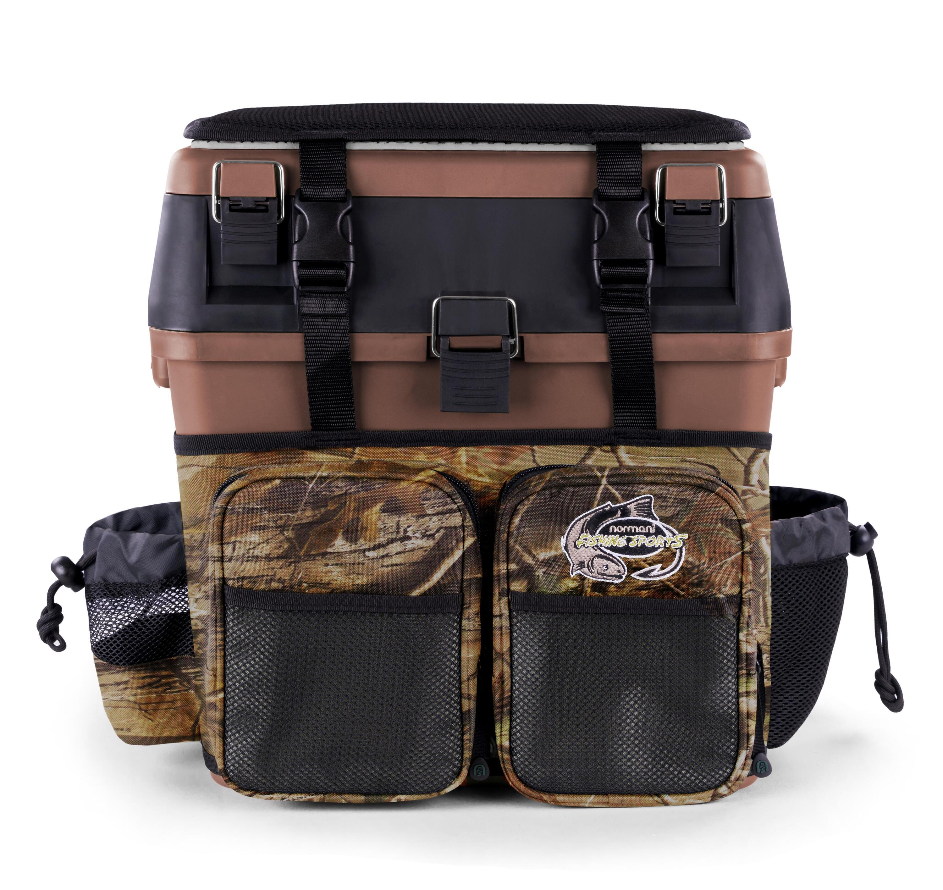 Unsere Angelbox „Bilbao“ überzeugt mit einfacher Handhabung und modernem Design als multifunktionaler Begleiter auf jeder Ihrer Angeltouren. In der Deckeloberseite sind 4 integrierte, verschließbare Kunststoffboxen, die den optimalen Stauraum für Haken, Köder, Bleie, Fischtöter, Hakenlöser, Zangen oder Messer bieten. Die Fächer im Zwischendeckel lassen sich dank eines Stecksystems individuell an die Länge Ihres Equipments anpassen. Sie können einzelne Trennwände herausnehmen und damit die Größe einzelner Fächer erweitern. Separate Halterungen für Zubehör wie Posen, stehen im Deckel ebenfalls zur Verfügung. Der individualisierbare Mittelteil lässt sich auf die eigenen Bedürfnisse anpassen. Das geräumige Hauptfach, mit einem Volumen von 22 Liter, bietet den optimalen Stauraum für Grundequipment wie Kunststoffboxen, Werkzeug, Schnurrollen, Lockfutter, sperrige Wobbler, große Weichplastikköder, Köderfischbehälter sowie eine Vorfach- oder Rollentasche. Für sicheren Transport und Aufbewahrung befinden sich 3 verschließbaren Clips an der Frontseite. Die Box besteht aus 100 % Kunststoff. Damit ist der Inhalt vor Wasser und Dreck geschützt. Mit einem Leergewicht von 2160 Gramm ist die Angelbox bestens für einen Angelausflug mit einigen Metern Fußmarsch geeignet. Weitere Aufbewahrungsmöglichkeiten bieten die 2 vorderen Außentaschen mit Reißverschluss sowie die Netztaschen links und rechts, in denen eine Trinkflasche oder weiteres Equipment griffbereit verstaut werden kann. Die langen nfs Zipper an den Außentaschen bieten guten Halt und ermöglichen auch beim Tragen von Angelhandschuhen oder nassen Händen ein leichtes Öffnen und Schließen der Reißverschlüsse. Zusätzlich bietet die Angeltasche an der Rückseite ausreichend Platz für Dokumente, Anglerschein oder Kartenmaterial. Für einen längeren, unebenen Weg zur Wasserstelle oder dem zügigen Wechsel der Angelstelle gewährleisten die gepolsterten Tragegurte sowie der abnehmbare Tragegurt einen hohen Tragekomfort um sein Tackle für das Angeln von Hecht, Zander, Aal oder Karpfen zu transportieren. Ausgedehnte Aufenthalte mit einer entspannten Sitzmöglichkeit am Ufer sind durch das integrierte Sitzpolster am Deckel gewährleistet. Die Box bietet Ihnen einen angenehmen Sitzplatz auf einer Sitzhöhe von 40 cm und sorgt mit einer maximalen Belastbarkeit von 150 kg für ausreichende Stabilität. Die Angelbox „Bilbao“ verbindet Angelrucksack, Sitzkiepe und Angelkoffer in einem Produkt. Abmessungen • 40 cm (Höhe) x 38 cm (Breite) x 26 cm (Tiefe) Hauptfach • 35 cm (Höhe) x 36 cm (Breite) x 24 cm (Tiefe) Deckel • 6 cm (Höhe) x 36 cm (Breite) x 19 cm (Tiefe) Kunststoffboxen im Deckel • 3 cm (Höhe) x 14 cm (Breite) x 7 cm (Tiefe) Fronttaschen • 20 cm (Höhe) x 16 cm (Breite) x 5 cm (Tiefe) Rückentasche • 18 cm (Höhe) x 32 cm (Breite) Gewicht • 2160 g Material Box: • 100% Kunststoff Material Bezug: • 100% Polyester