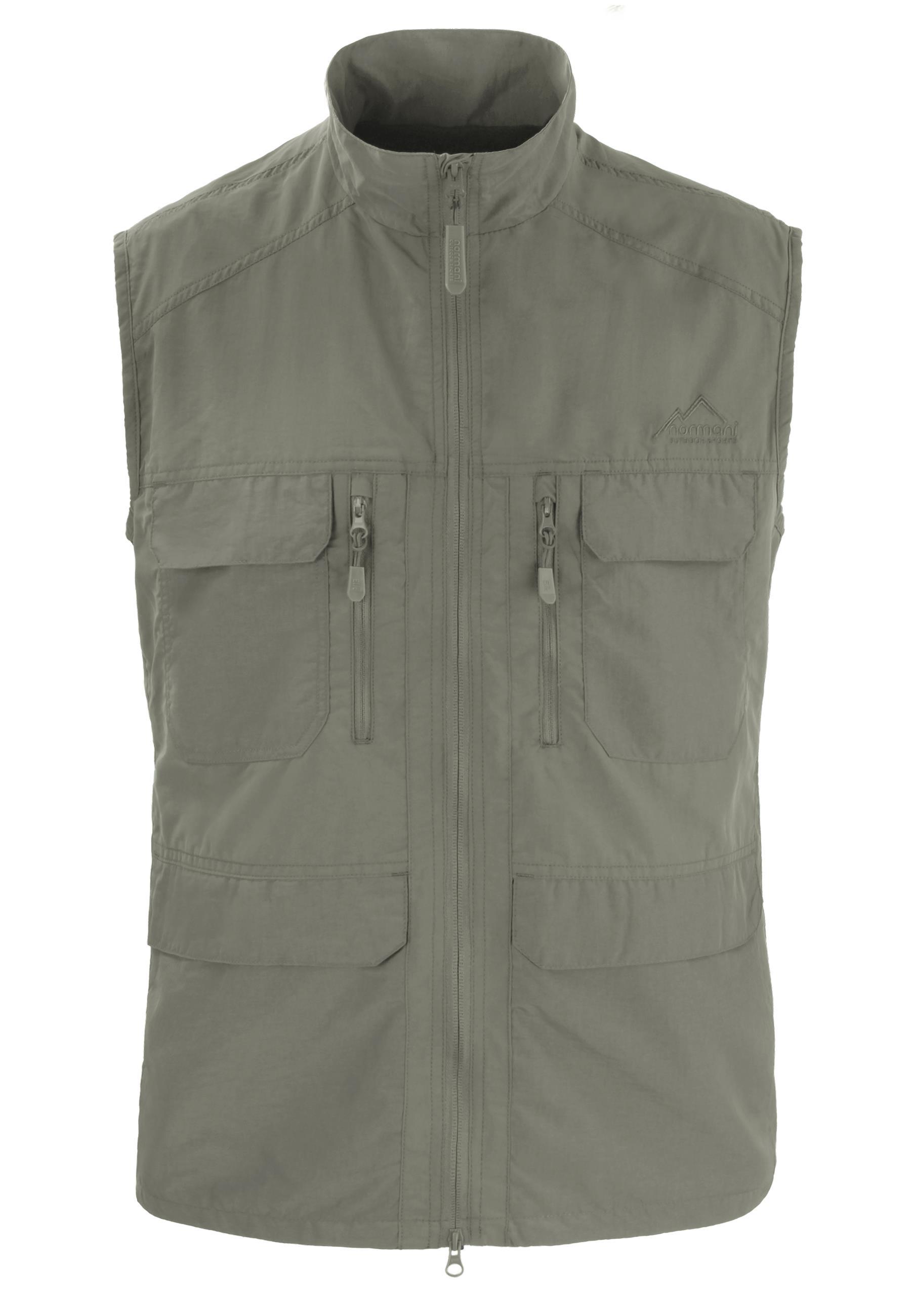Urbaner Alltagsstyle trifft auf funktionelle Outdoorbegeisterung. Der symmetrische Aufbau der Outdoor-Weste ermöglicht das Bedienen und Erreichen der einzelnen Taschen gleichermaßen für Links wie Rechtshänder. Die diversen Taschen, Reißverschluss-, Klett- und Knopftaschen bieten viel Stauraum direkt am Körper. Reisepass oder Kreditkarte können in den Innentaschen mit Reißverschluss am sichersten aufbewahrt werden. Der YKK-Hauptreißverschluss ist ein 2-Wege-Reißverschluss, welcher sich auch von unten nach oben öffnen lässt. Im Bus oder auf dem Boot wird eine bessere Flexibilität erreicht. Der hochgeschnittene Kragen schützt den empfindlichen Halsbereich vor unangenehmen Wind, während unten eine angenehme Luftzirkulation herrscht. Im oberen Rückenbereich sind 2 Belüftungslöcher eingelassen. Zusammen mit dem Netzinnenfutter wird auch in tropischen Gebieten ein ausgleichendes Feuchtigkeitsmanagement erreicht. Schweiß auf der Haut oder Nässe durch hohe Luftfeuchtigkeit wird vom Stoff aufgenommen und weg vom Körper nach Außen abgeleitet. Das SolarDef Material besitzt einen Sonnenschutzfaktor von 50+. Der Ausgangsstoff bildet ein reißfestes, strapazierfähiges Polyamid Material. Die Materialstärke, sowie die feine Webart des Stoffes generieren einen Sonnenschutzfaktor von 50+ und lassen weniger als 2 % der schädlichen UV-Strahlen den Stoff durchdringen. Dadurch können Sie Ihre Zeit in der ausgesetzten Sonne um das 50-fache verlängern. Die strenge australisch-neuseeländische Standard AZ/NZS 4399:1996 wird damit ebenfalls erfüllt. Das Material wird dabei frei von schädlichen Fluorcarbonen (PFC) hergestellt. Materialzusammensetzung: • Außenmaterial: 100 % Polyamid • Innenmaterial: 100 % Polyester UV-Sonnenschutzfaktor: • 50+ Gewicht: • 366 g (Gr. M) Gender: • Herren Größentabelle: • XS - Brustweite (halber Umfang, von Achsel zu Achsel) 55 cm - Gesamtlänge ab Schulter 68 cm - Schulter (halber Umfang) 46 cm • S - Brustweite (halber Umfang, von Achsel zu Achsel) 57 cm - Gesamtlänge ab Schulter 70 cm - Schulter (halber Umfang) 48cm • M - Brustweite (halber Umfang, von Achsel zu Achsel) 59 cm - Gesamtlänge ab Schulter 72 cm - Schulter (halber Umfang) 50 cm • L - Brustweite (halber Umfang, von Achsel zu Achsel) 61 cm - Gesamtlänge ab Schulter 74 cm - Schulter (halber Umfang) 52 cm • XL - Brustweite (halber Umfang, von Achsel zu Achsel) 63 cm - Gesamtlänge ab Schulter 76 cm - Schulter (halber Umfang) 54 cm • XXL - Brustweite (halber Umfang, von Achsel zu Achsel) 65 cm - Gesamtlänge ab Schulter 78 cm - Schulter (halber Umfang) 56 cm • 3XL - Brustweite (halber Umfang, von Achsel zu Achsel) 67 cm - Gesamtlänge ab Schulter 80 cm - Schulter (halber Umfang) 58 cm • 4XL - Brustweite (halber Umfang, von Achsel zu Achsel) 69 cm - Gesamtlänge ab Schulter 82 cm - Schulter (halber Umfang) 60 cm • 5XL - Brustweite (halber Umfang, von Achsel zu Achsel) 71 cm - Gesamtlänge ab Schulter 84 cm - Schulter (halber Umfang) 62 cm