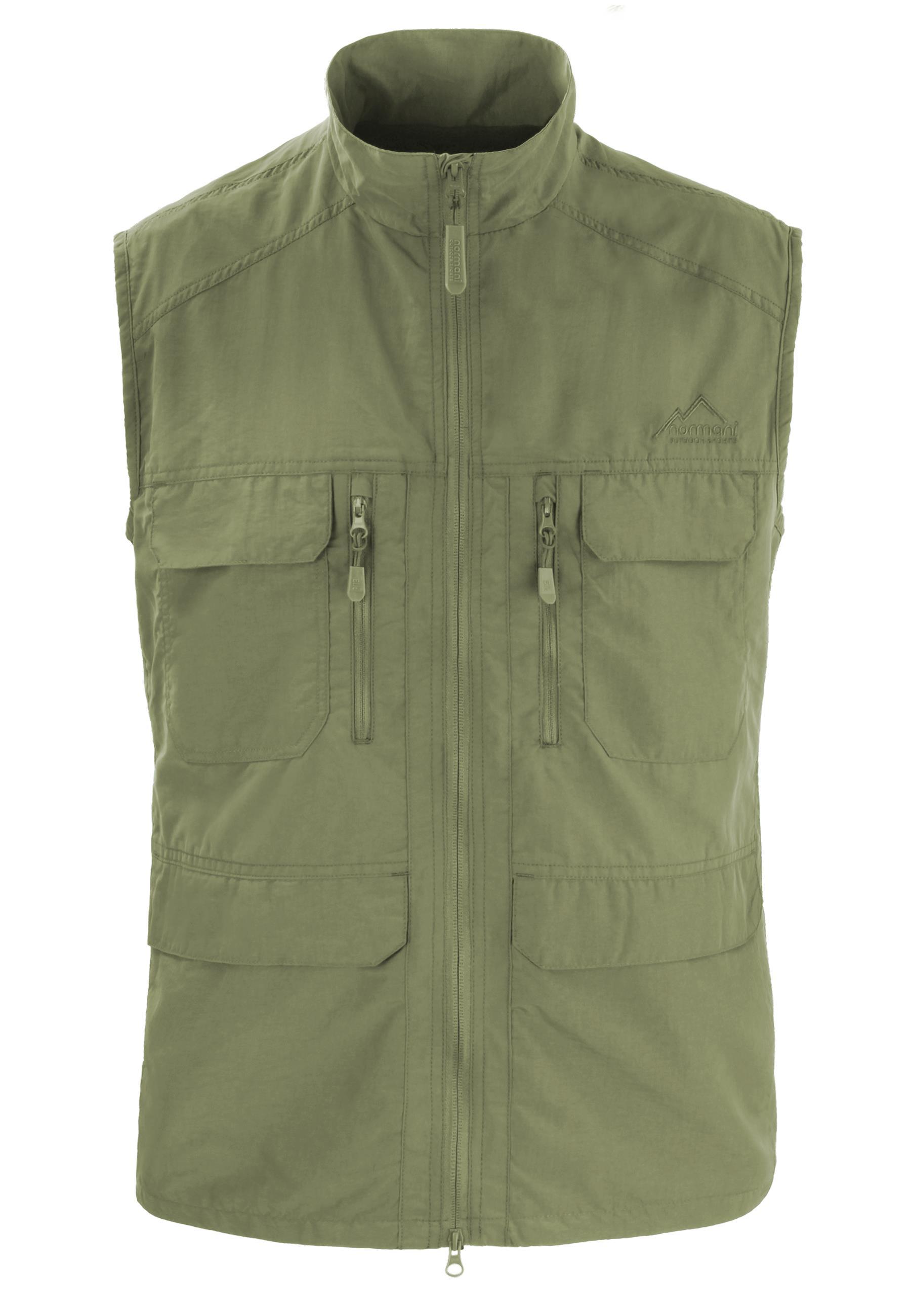 Urbaner Alltagsstyle trifft auf funktionelle Outdoorbegeisterung. Der symmetrische Aufbau der Outdoor-Weste ermöglicht das Bedienen und Erreichen der einzelnen Taschen gleichermaßen für Links wie Rechtshänder. Die diversen Taschen, Reißverschluss-, Klett- und Knopftaschen bieten viel Stauraum direkt am Körper. Reisepass oder Kreditkarte können in den Innentaschen mit Reißverschluss am sichersten aufbewahrt werden. Der YKK-Hauptreißverschluss ist ein 2-Wege-Reißverschluss, welcher sich auch von unten nach oben öffnen lässt. Im Bus oder auf dem Boot wird eine bessere Flexibilität erreicht. Der hochgeschnittene Kragen schützt den empfindlichen Halsbereich vor unangenehmen Wind, während unten eine angenehme Luftzirkulation herrscht. Im oberen Rückenbereich sind 2 Belüftungslöcher eingelassen. Zusammen mit dem Netzinnenfutter wird auch in tropischen Gebieten ein ausgleichendes Feuchtigkeitsmanagement erreicht. Schweiß auf der Haut oder Nässe durch hohe Luftfeuchtigkeit wird vom Stoff aufgenommen und weg vom Körper nach Außen abgeleitet. Das SolarDef Material besitzt einen Sonnenschutzfaktor von 50+. Der Ausgangsstoff bildet ein reißfestes, strapazierfähiges Polyamid Material. Die Materialstärke, sowie die feine Webart des Stoffes generieren einen Sonnenschutzfaktor von 50+ und lassen weniger als 2 % der schädlichen UV-Strahlen den Stoff durchdringen. Dadurch können Sie Ihre Zeit in der ausgesetzten Sonne um das 50-fache verlängern. Die strenge australisch-neuseeländische Standard AZ/NZS 4399:1996 wird damit ebenfalls erfüllt. Das Material wird dabei frei von schädlichen Fluorcarbonen (PFC) hergestellt. Materialzusammensetzung: • Außenmaterial: 100 % Polyamid • Innenmaterial: 100 % Polyester UV-Sonnenschutzfaktor: • 50+ Gewicht: • 366 g (Gr. M) Gender: • Herren Größentabelle: • XS - Brustweite (halber Umfang, von Achsel zu Achsel) 55 cm - Gesamtlänge ab Schulter 68 cm - Schulter (halber Umfang) 46 cm • S - Brustweite (halber Umfang, von Achsel zu Achsel) 57 cm - Gesamtlänge ab Schulter 70 cm - Schulter (halber Umfang) 48cm • M - Brustweite (halber Umfang, von Achsel zu Achsel) 59 cm - Gesamtlänge ab Schulter 72 cm - Schulter (halber Umfang) 50 cm • L - Brustweite (halber Umfang, von Achsel zu Achsel) 61 cm - Gesamtlänge ab Schulter 74 cm - Schulter (halber Umfang) 52 cm • XL - Brustweite (halber Umfang, von Achsel zu Achsel) 63 cm - Gesamtlänge ab Schulter 76 cm - Schulter (halber Umfang) 54 cm • XXL - Brustweite (halber Umfang, von Achsel zu Achsel) 65 cm - Gesamtlänge ab Schulter 78 cm - Schulter (halber Umfang) 56 cm • 3XL - Brustweite (halber Umfang, von Achsel zu Achsel) 67 cm - Gesamtlänge ab Schulter 80 cm - Schulter (halber Umfang) 58 cm • 4XL - Brustweite (halber Umfang, von Achsel zu Achsel) 69 cm - Gesamtlänge ab Schulter 82 cm - Schulter (halber Umfang) 60 cm • 5XL - Brustweite (halber Umfang, von Achsel zu Achsel) 71 cm - Gesamtlänge ab Schulter 84 cm - Schulter (halber Umfang) 62 cm