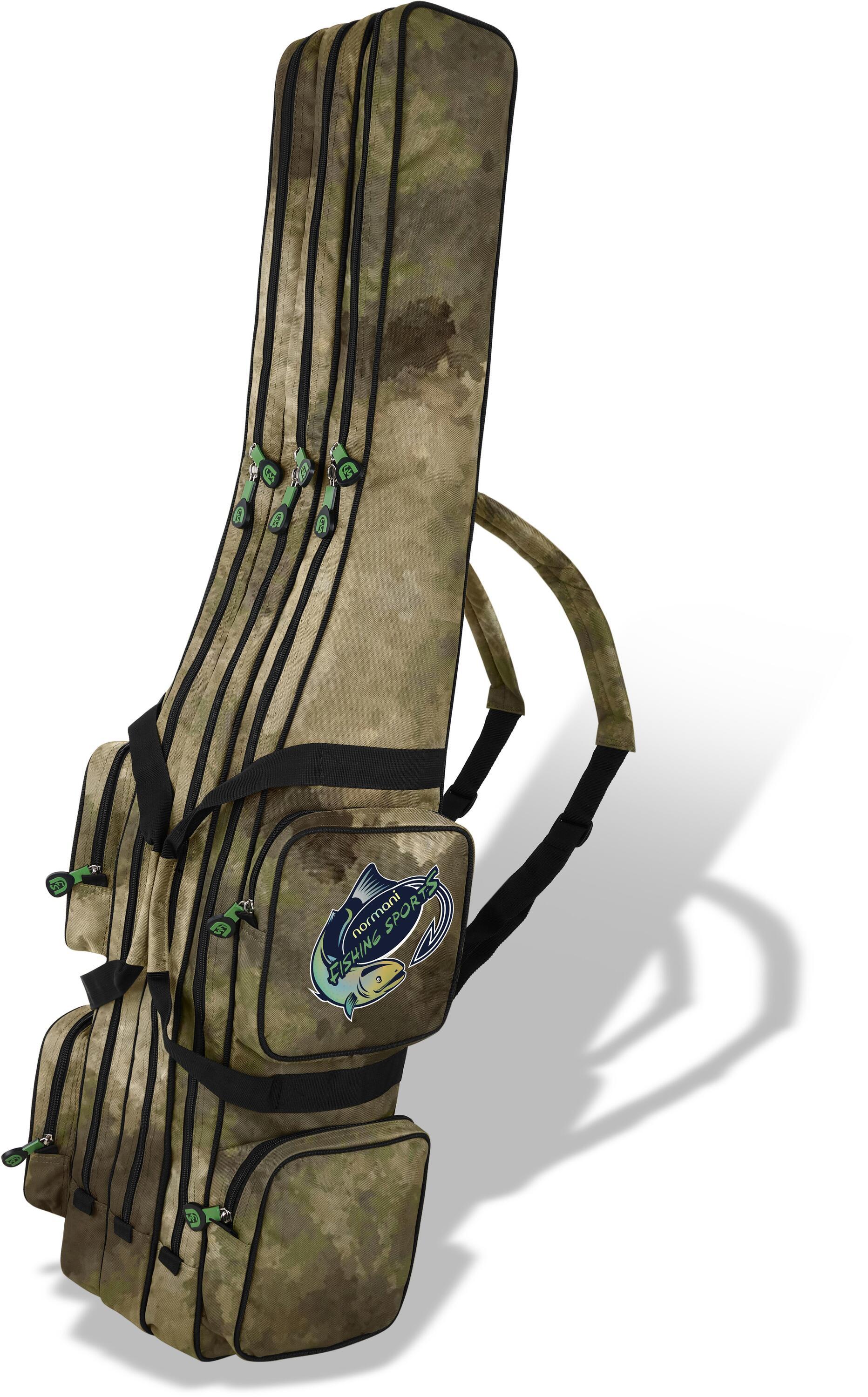 In diese Rutentasche mit 3 separaten Fächern und 5 großzügigen Außentaschen passen insgesamt 6 montierte Ruten. Für optimalen Schutz auf der Fahrt oder dem Weg zum Angelplatz werden die Ruten innen mit elastischen Klettverschluss-Gurten befestigt. Die einzelnen Fächer verhindern, dass die empfindliche Ausrüstung aneinanderstößt und bieten dadurch besten Schutz für Ruten und deren Spitzen. Praktische 2-Wege-Reißverschlüsse und griffige, große "nfs"-Zipper vereinfachen das Öffnen und Schließen der Fächer. Die aufgesetzten Außentaschen mit Reißverschlüssen bieten Platz für zusätzliche Utensilien, in der langen seitlichen Außentasche lässt sich ein Kescher optimal verstauen. Die Rutentasche kann dank verstellbaren und gepolsterten Schultergurten, wie ein Rucksack, geschultert werden oder an den beiden Tragegriffen auf der Oberseite transportiert werden. Das wasserabweisende Obermaterial schützt den Inhalt vor Feuchtigkeit und lässt sich problemlos mit einem feuchten Tuch reinigen. Material • 100 % Polyester Details 1,25 m • Maße: 125 (H) x 21 (B) x 22 (T) cm • Volumen: 58 Liter • Gewicht: 2005 g 1,50 m • Maße: 150 (H) x 21 (B) x 22 (T) cm • Volumen: 65 Liter • Gewicht: 2149 g 1,60 m • Maße: 160 (H) x 21 (B) x 22 (T) cm • Volumen: 68 Liter • Gewicht: 2248 g 1,70 m • Maße: 170 (H) x 23 (B) x 24 (T) cm • Volumen: 71 Liter • Gewicht: 2398 g 1,90 m • Maße: 190 (H) x 23 (B) x 24 (T) cm • Volumen: 77 Liter • Gewicht: 2505 g Außentaschen • 2 x Seitenfach: 20 x 20 x 7 cm • 2 x Seitenfach: 20 x 10 x 6 cm • 1 x Kescherfach