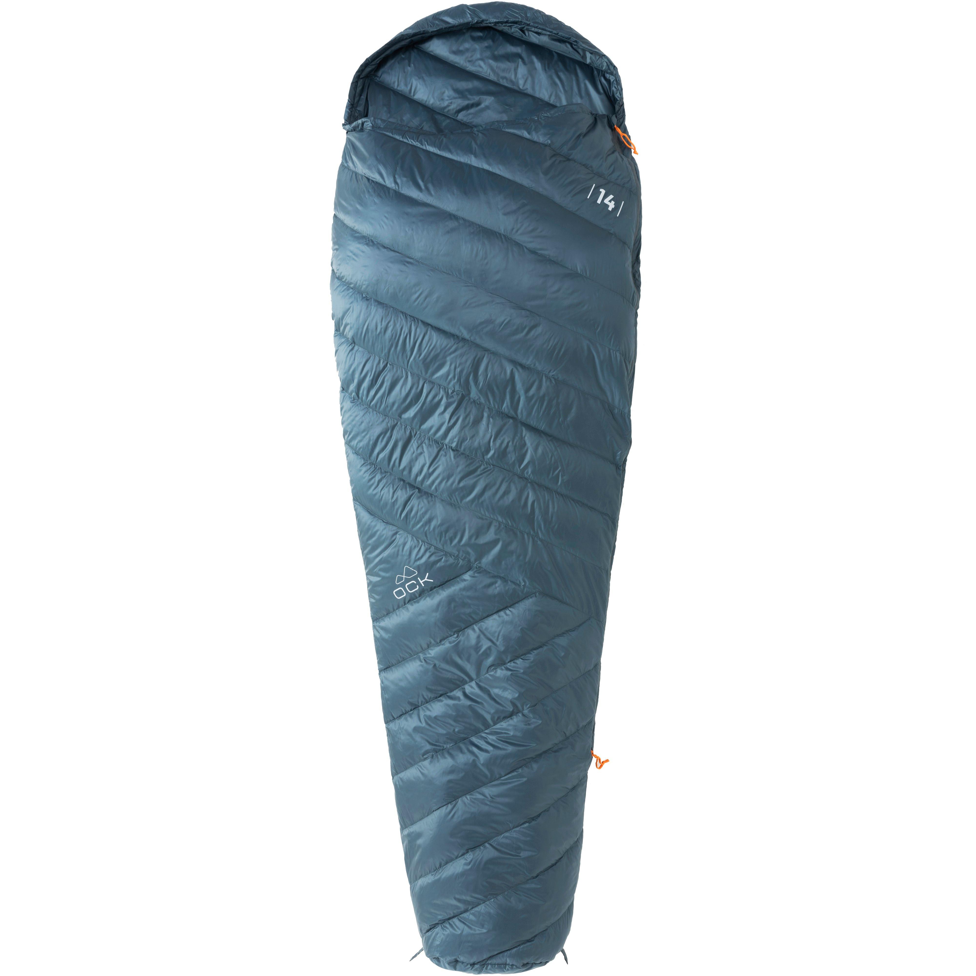 Daunenschlafsack in Mumienform für milde Nächte; mit Kapuze und seitlichem Reißverschluss; inklusive Kompressionspacksack; Temperaturbereich (Komfort/Limit/Extrem): 14/11/0°C; Maße (L/B): ca. 215 x 80 cm; geeignet für eine Körpergröße bis zu 195 cm; Gewicht: ca. 500 g; Material Polyester.