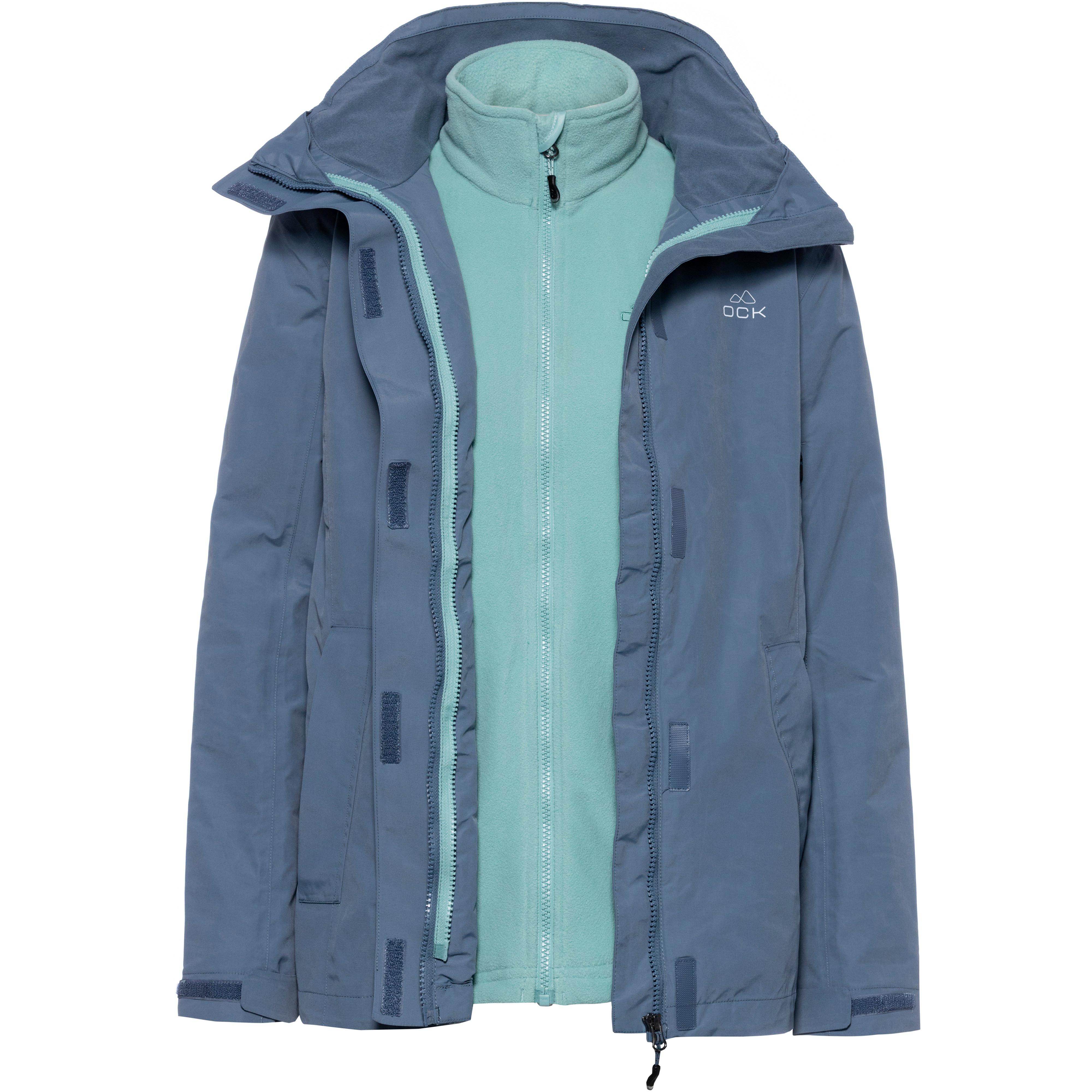 Funktionelle Doppeljacke mit 3in1-Funktion; Außenjacke mit atmungsaktiven sowie wasser-und winddichten Eigenschaften; Wassersäule: 5.000 mm; leicht taillierter Schnitt; mit dauerhaft wasserabweisendem, ohne PFC hergestelltem Bionic Finish® Eco und versiegelten Nähten; geräumige, abnehmbare Kapuze mit Kordelzug; Stehkragen zum Schutz von Hals-und Nackenbereich; durchgehender Frontreißverschluss mit Kletteinsätzen; Innentasche; Reißverschlüsse im Achselbereich sorgen für optimale Luftzirkulation; seitliche Eingrifftaschen; Innenjacke aus wärmendem Fleecematerial; Stehkragen mit durchgehendem Frontreißverschluss und Kinnschutz; seitliche Reißverschlusstaschen; Kordelzug am Saum; diverse Markendetails; Material I 100% Polyester (recycelt); Material II 100% Polyamid (recycelt).