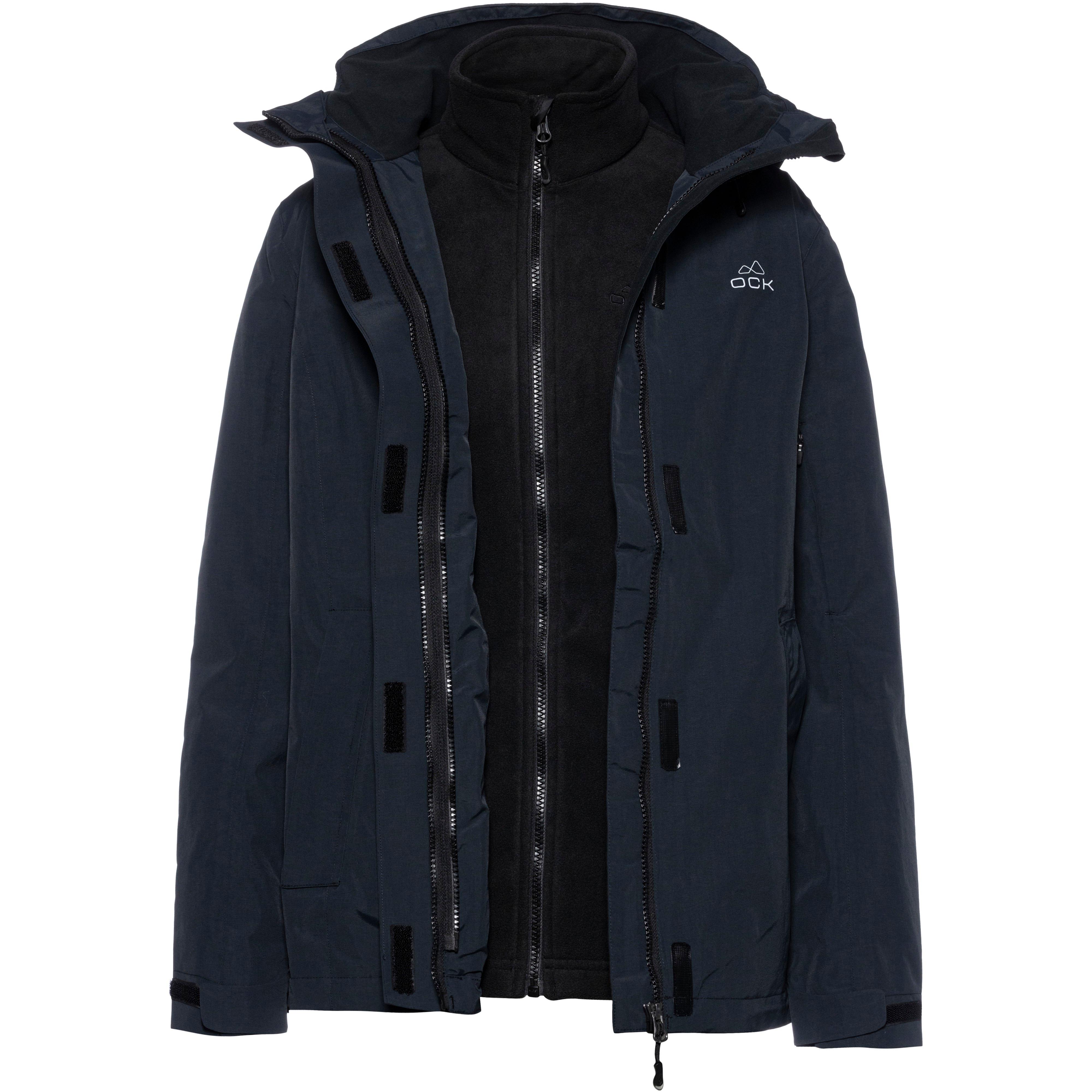 Funktionelle Doppeljacke mit 3in1-Funktion; Außenjacke mit atmungsaktiven sowie wasser-und winddichten Eigenschaften; Wassersäule: 5.000 mm; leicht taillierter Schnitt; mit dauerhaft wasserabweisendem, ohne PFC hergestelltem Bionic Finish® Eco und versiegelten Nähten; geräumige, abnehmbare Kapuze mit Kordelzug; Stehkragen zum Schutz von Hals-und Nackenbereich; durchgehender Frontreißverschluss mit Kletteinsätzen; Innentasche; Reißverschlüsse im Achselbereich sorgen für optimale Luftzirkulation; seitliche Eingrifftaschen; Innenjacke aus wärmendem Fleecematerial; Stehkragen mit durchgehendem Frontreißverschluss und Kinnschutz; seitliche Reißverschlusstaschen; Kordelzug am Saum; diverse Markendetails; Material I 100% Polyester (recycelt); Material II 100% Polyamid (recycelt).