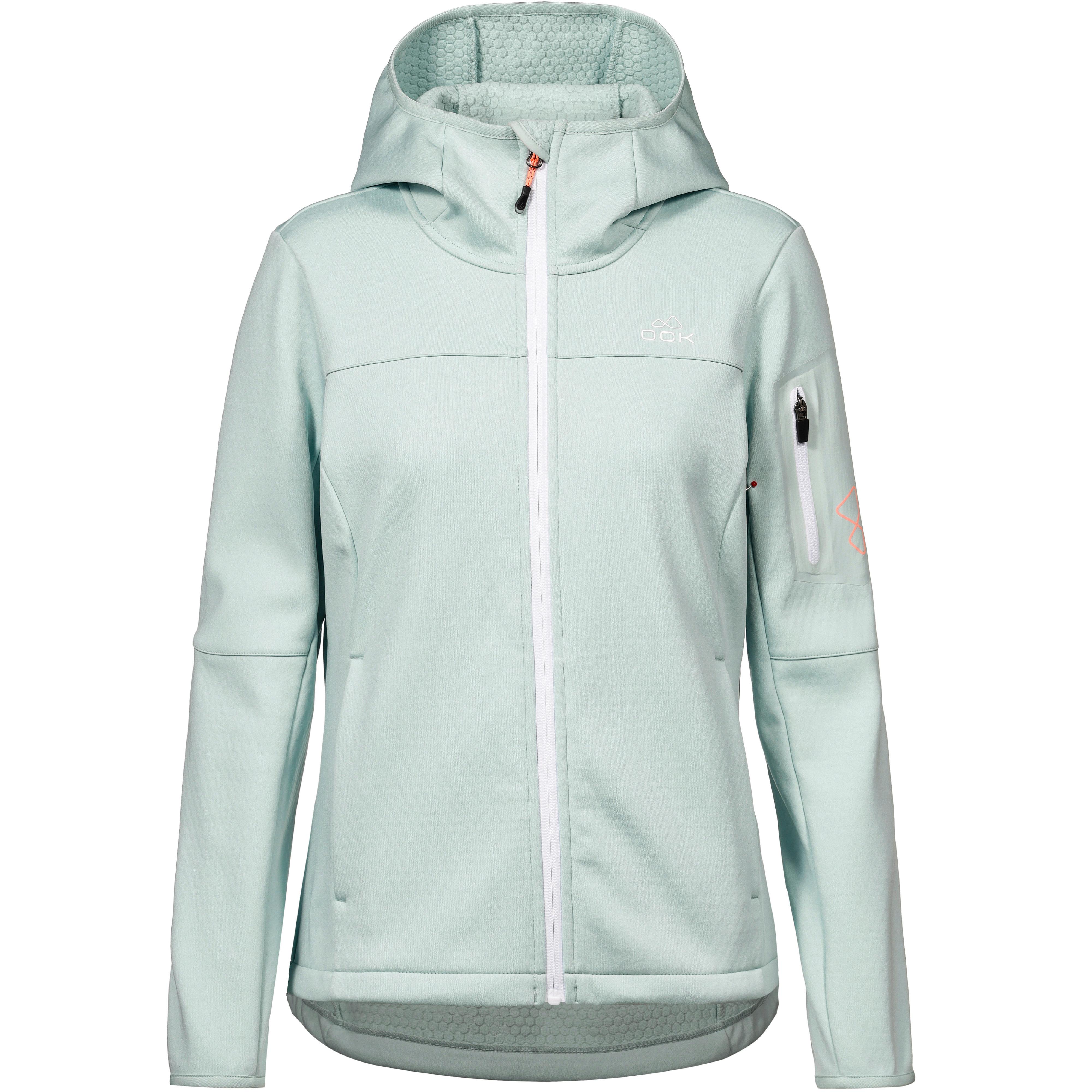 Taillierte Fleecejacke für Damen; Kapuze; Kragen mit Kinnschutz; hinterlegter Frontreißverschluss; die vorgeformten Ärmel sorgen für optimale Bewegungsfreiheit bei allen Aktivitäten; 1 Oberarmtasche mit Reißverschluss; verdeckte Seitentaschen mit Reißverschlüssen; verlängerte Zippbändchen; Markendetails; weitenregulierbarer Saum mit integriertem Stopper; Material 100% Polyester.