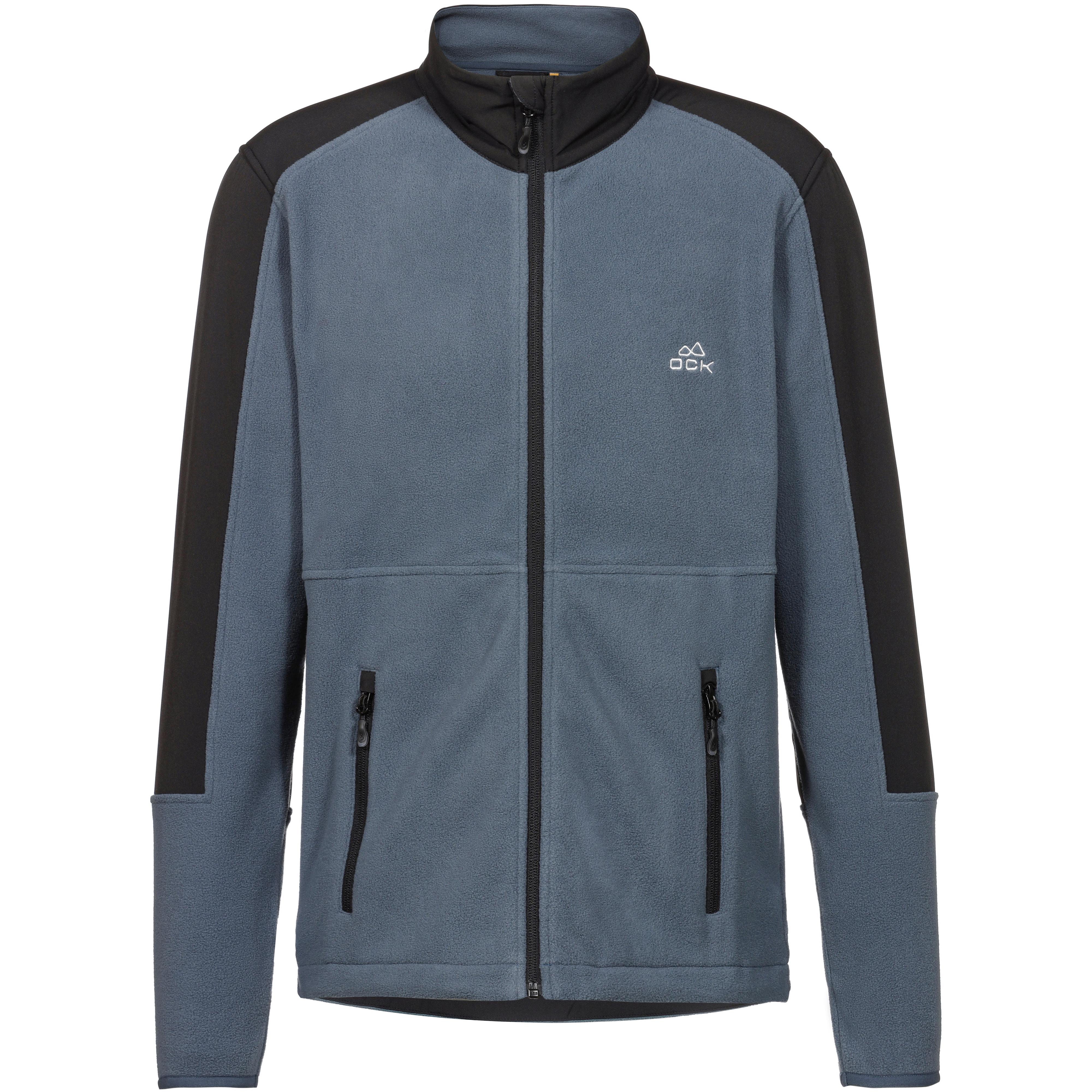 Fleecejacke aus recyceltem Materialien; Stehkragen mit Kinnschutz; hinterlegter Frontreißverschluss; Seitentaschen mit Reißverschlüssen und Zipgaragen; Markendetail; weitenregulierbarer Saum mit integriertem Stopper; Material I 100% Polyester (recycelt), Material II 88% Polyester, 12% Elastan.