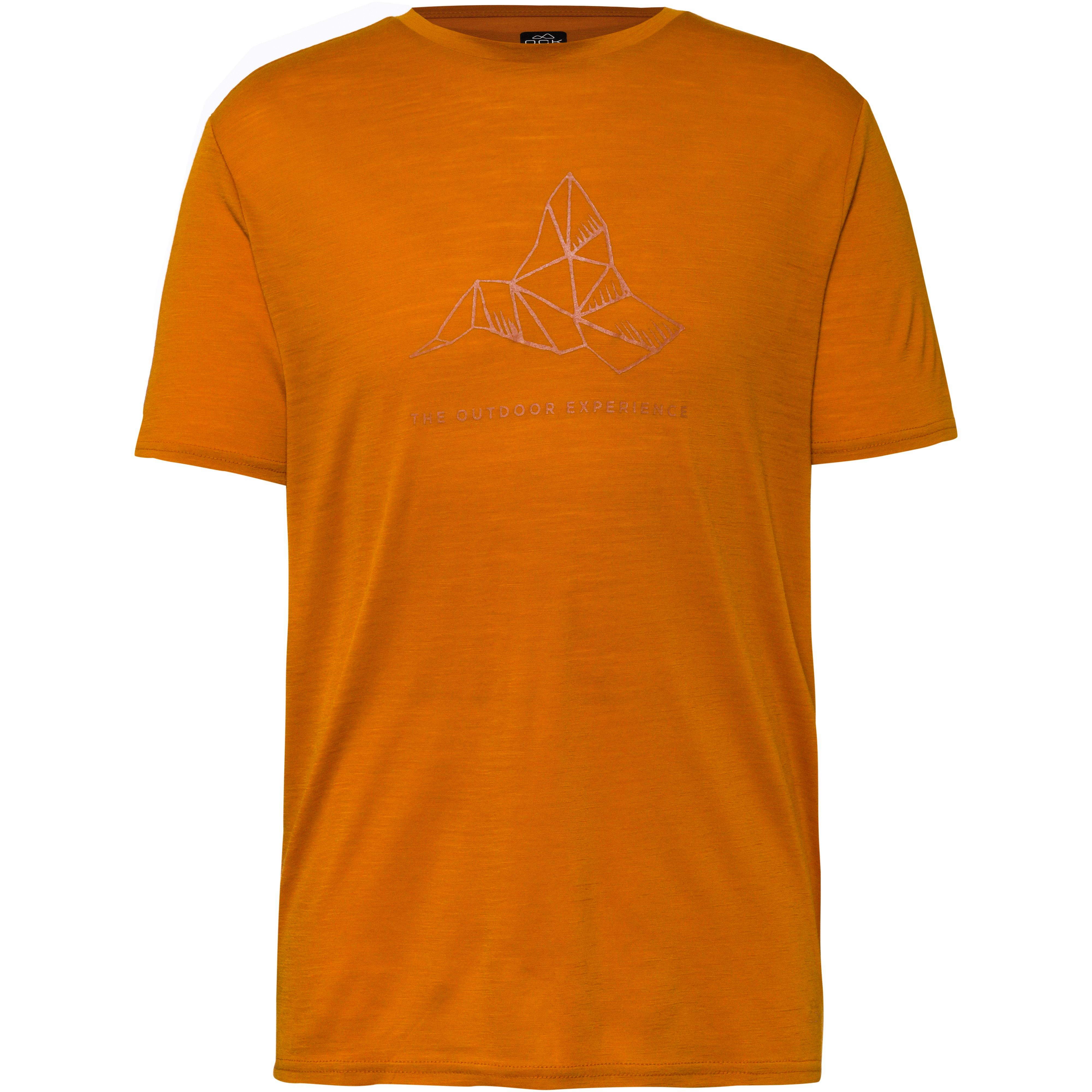 Kurzarmshirt mit wärmender, atmungsaktiver sowie geruchshemmender Funktion; ideal für das Layering-Prinzip; als Baselayer wirkt das Shirt temperaturregulierend; als Midlayer isoliert und schützt es vor Kälte; Rundhalsausschnitt; Print auf der Front; Material 70% Wolle (Merinowolle), 30% Polyester.