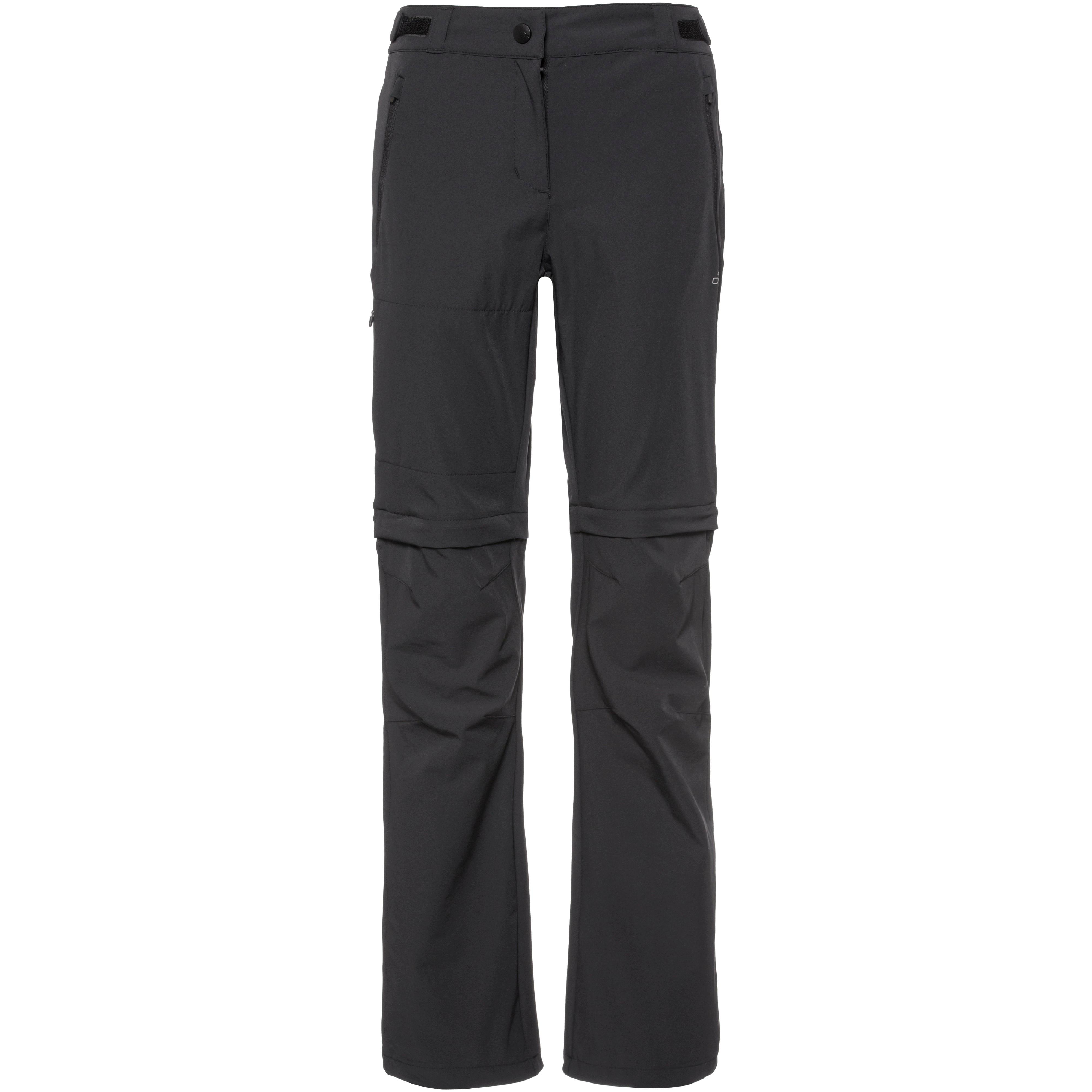 Wanderhose aus 4-Wege-Stretchmaterial mit antistatischen und schnelltrocknenden Eigenschaften; dauerhaft wasserabweisend dank ohne PFC hergestelltem Bionic Finish® Eco; die Hosenbeine sind per Reißverschluss über den Knien abnehmbar; weitenregulierbarer Bund mit seitlichen Klettriegeln und Gürtelschlaufen; Druckknopf- und Reißverschluss; 2 seitliche Reißverschlusstaschen sowie eine Beintasche und eine Gesäßtasche mit Reißverschluss; vorgeformte Kniepartie; Beinabschlüsse mit Gummizug und Stopper; Seitenlänge ab Bundkante: ca. 106 cm (Größe 38); Material 90% Polyamid, 10% Elastan.