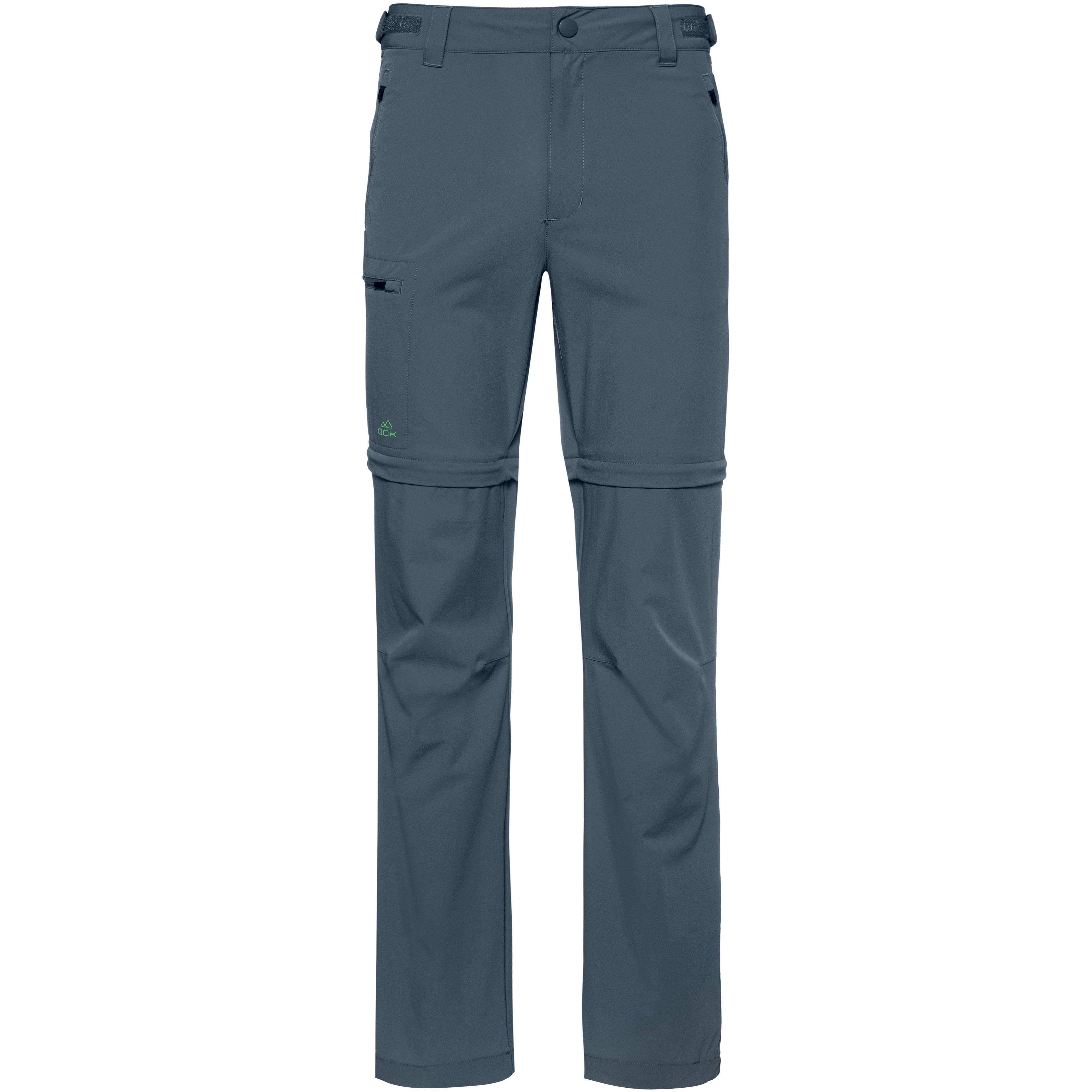 Wanderhose aus antistatischem und schnelltrocknendem Stretch-Material; dauerhaft wasserabweisend dank ohne PFC hergestelltem Bionic Finish® Eco; weitenregulierbarer Bund mit Klettriegeln und Gürtelschlaufen; Druckknopf- und Reißverschluss; 2 Seitentaschen, eine Gesäßtasche und eine Beintasche mit Reißverschluss; vorgeformte Knie; die Hosenbeine sind per Reißverschluss über den Knien abnehmbar; Beinabschlüsse mit Gummizug weitenregulierbar; Seitenlänge ab Bundkante: ca. 110 cm (Größe 50); Material 90% Polyamid, 10% Elastan.
