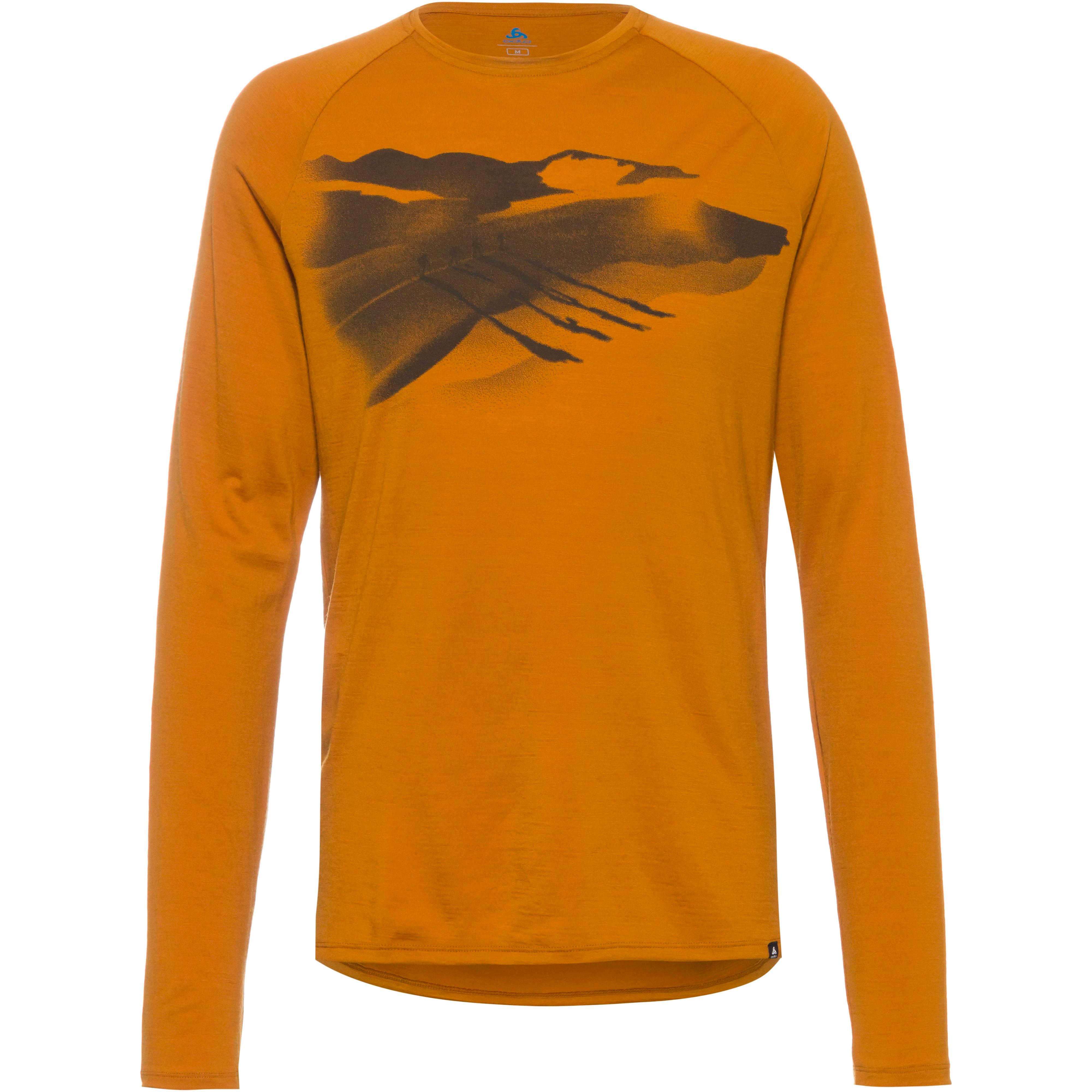 Funktionsshirt mit TCS°-System, gute Wärmeisolierung, hält warm und trocken, feuchtigkeitsregulierend; Rundhalsausschnitt; langärmelige Raglanärmel für optimale Bewegungsfreiheit; dezenter Print auf der Front; athletische Passform; unter fairen Bedingungen gemäß der Fair Wear Foundation hergestellt; Made in Europe; Material 100% Wolle (Merinowolle).