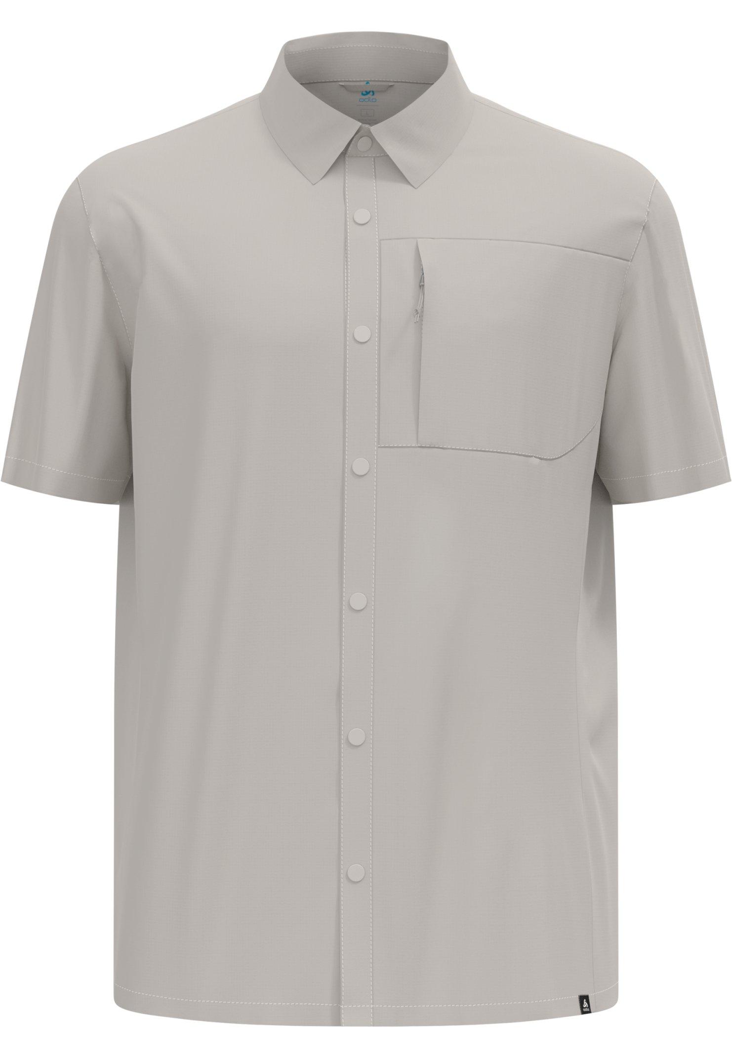 Dieses schnelltrocknende Kurzarmhemd ist aus ultraleichtem und teilweise recyceltem strukturierten Ripstop-Gewebe gefertigt. Es kommt mit Knöpfen in Hemdfarbe sowie einer Brusttasche mit Reissverschluss. Raffiniertes, federleichtes Retro-Design für die Berge. Unser Model ist 185 cm groß und trägt die Größe L.