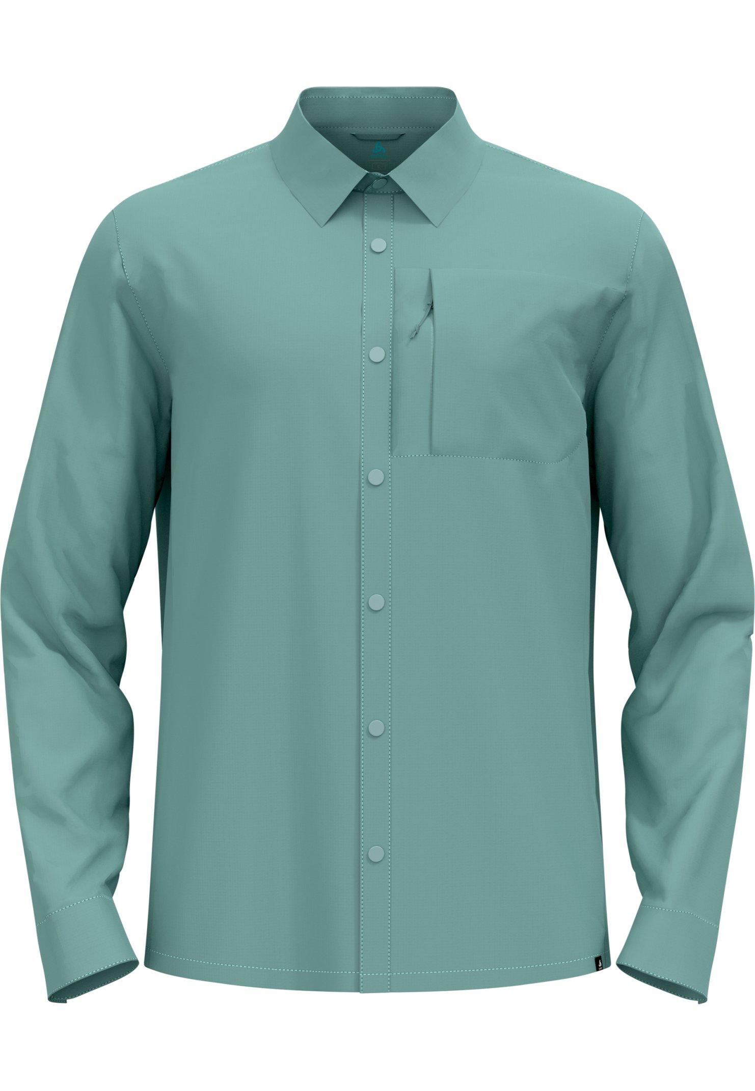 Dieses schnelltrocknende Langarmhemd ist aus ultraleichtem und teilweise recyceltem strukturierten Ripstop-Gewebe gefertigt. Es kommt mit Knöpfen in Hemdfarbe sowie einer Brusttasche mit Reissverschluss. Raffiniertes, federleichtes Retro-Design für die Berge. Unser Model ist 186 cm groß und trägt die Größe L.