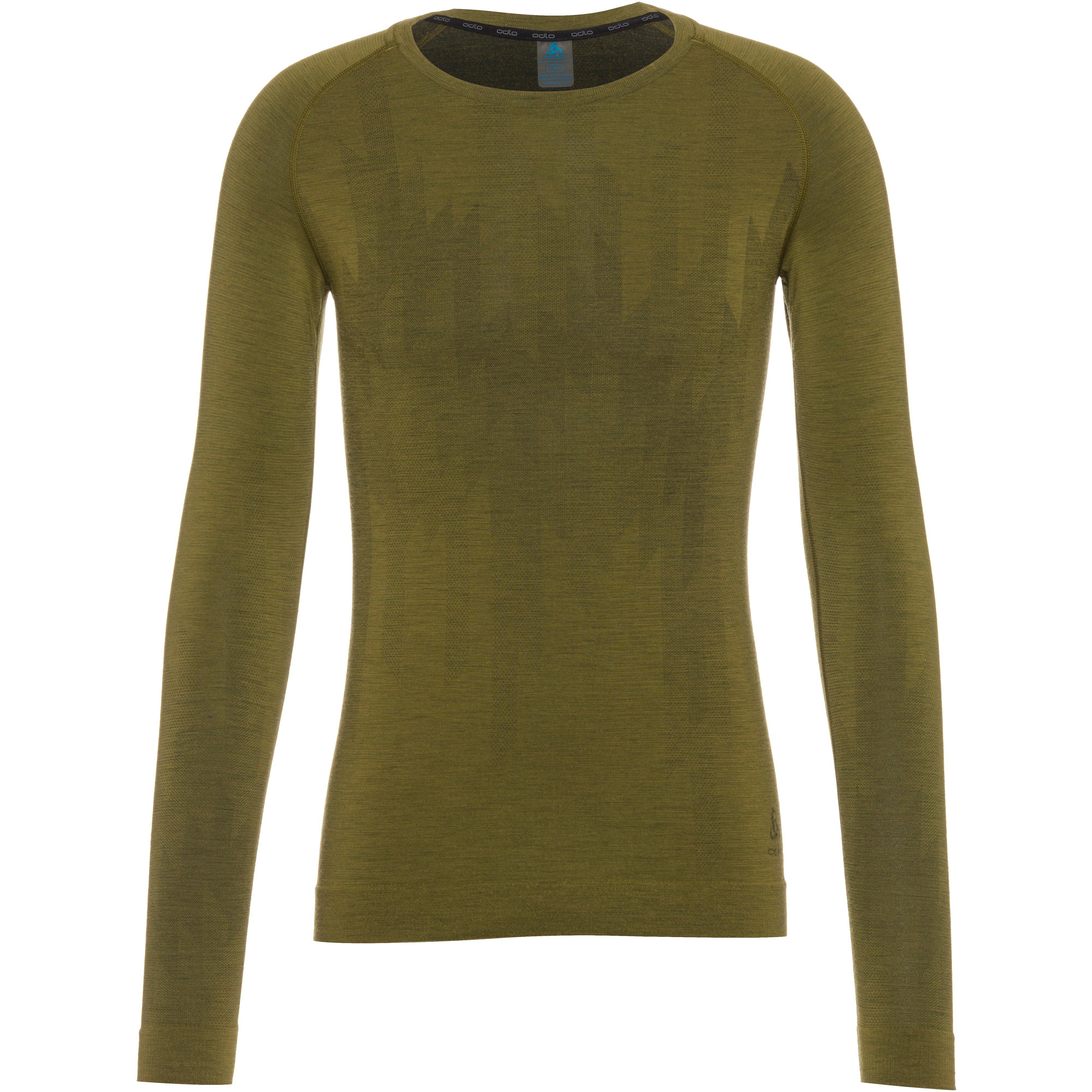 Nahezu nahtloses Funktionsshirt mit hohen, wärmendem Merinowollanteil; atmungsaktive und geruchshemmende Funktion; Rundhalsausschnitt; die Raglanärmel sorgen für optimale Bewegungsfreiheit; unter fairen Bedingungen gemäß der Fair Wear Foundation hergestellt; zertifiziert nach OEKO-TEX® Standard 100; Material 54% Wolle (Merinowolle), 31% Polyester, 13% Polyamid, 2% Elastan.