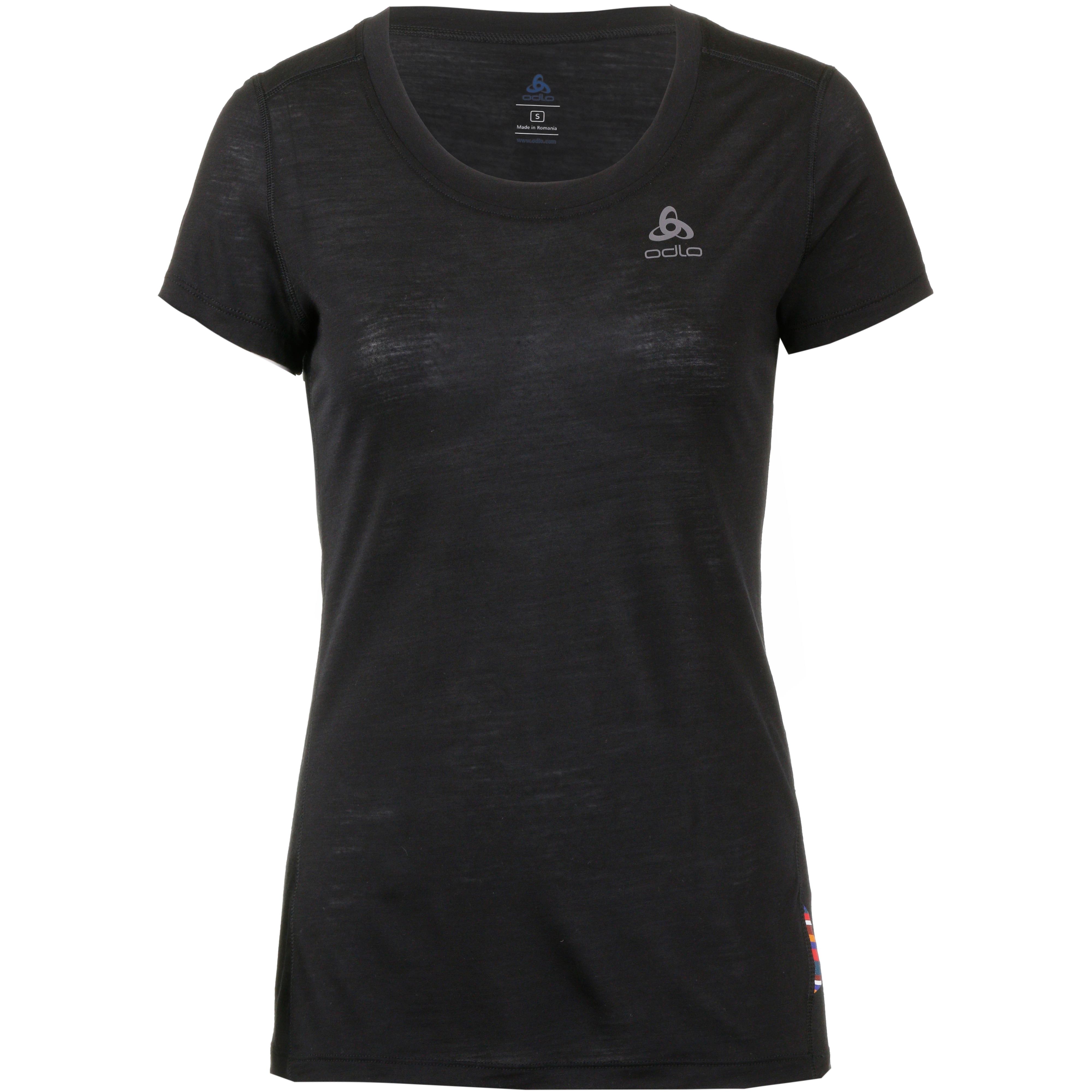 Odlo NATURAL + LIGHT. Kurzärmliges Funktionsshirt aus feuchtigkeitsregulierendem Merino-Mischgewebe; weicher Griff; flache, reibungsarme Nähte; Rundhalsausschnitt; Material 50% Wolle (Merinowolle), 50% Lyocell.