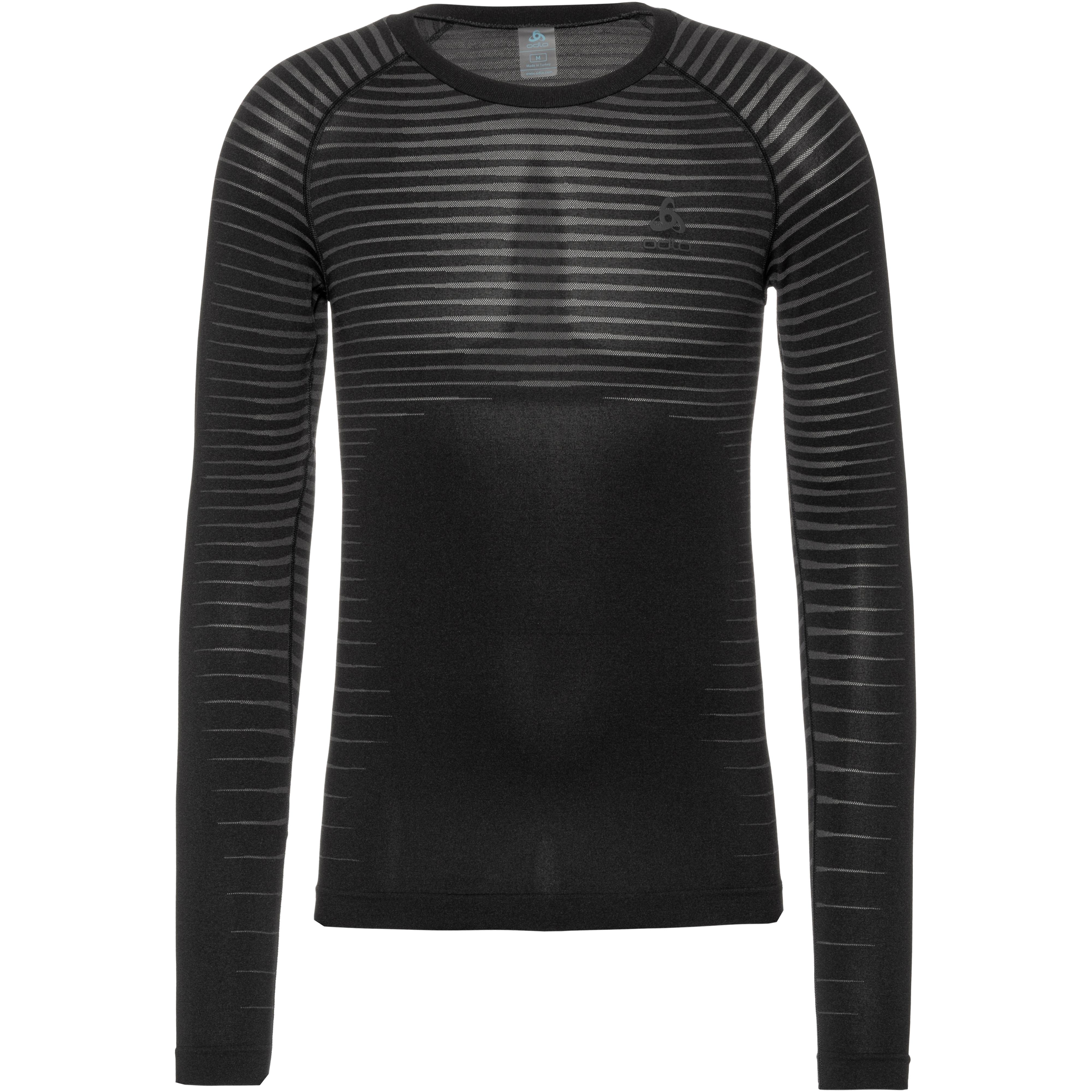 Odlo PERFORMANCE LIGHT. Nach Oeko-Tex® Standard produziertes Langarmshirt im nahezu nahtlosem Design für optimale Bewegungsfreiheit; schnelltrocknend; atmungsaktiv; gerippter Rundhalsausschnitt; bewegungsfreundliche Raglanärmel; elastischer Ärmel- und Saumabschluss; Flachnähte; Fair hergestellt; Logo-Detail; Material 63% Polyester, 33% Polyamid, 4% Elastan.
