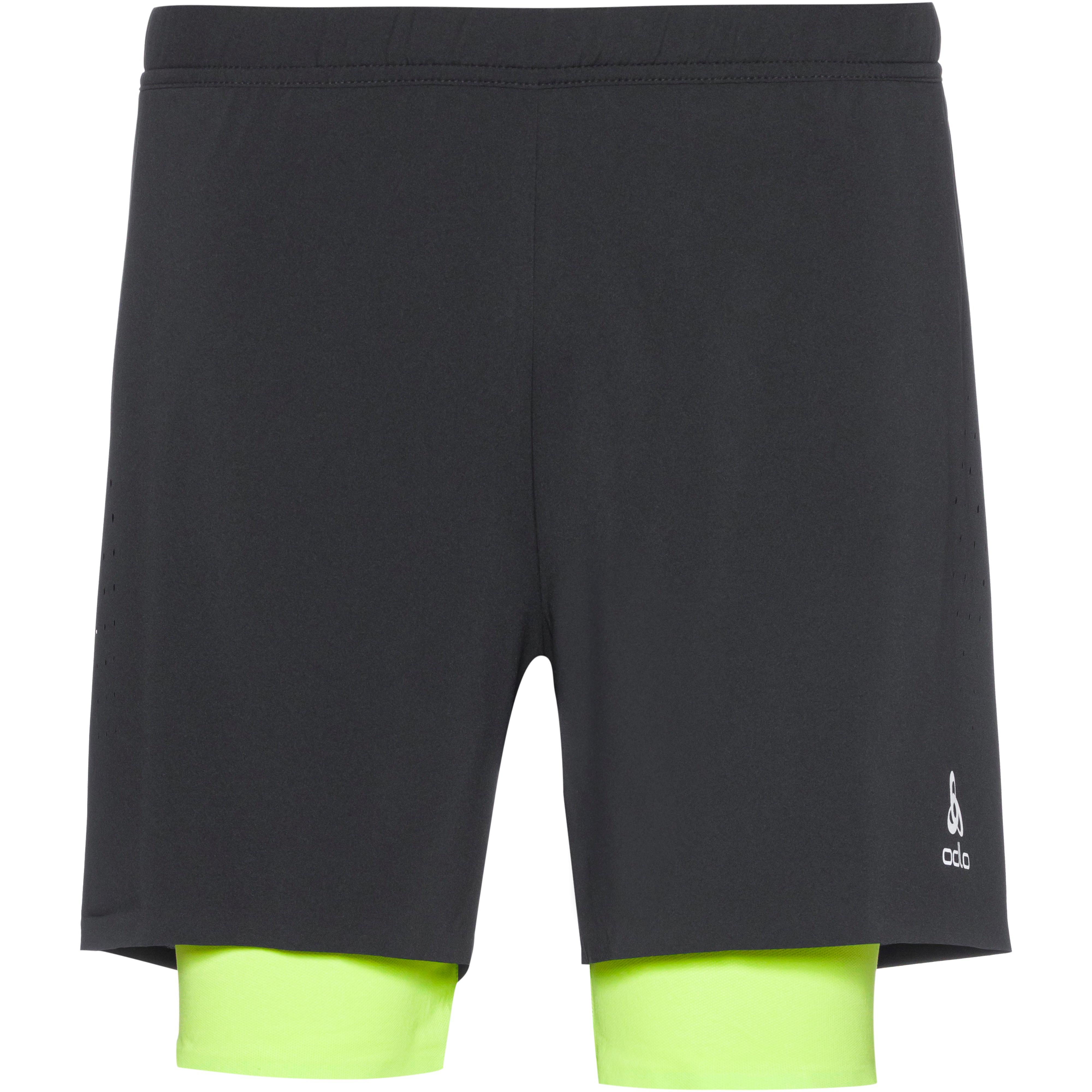 2in1 Funktionsshorts; weitenregulierbarer Elastikbund mit innenliegendem Kordelzug; die Perforationen in den Seiten sorgen für angenehme Ventilation bei allen Aktivitäten; Reißverschlusstasche im Rückenbereich; reflektierende Elemente; Innenhose aus atmungsaktivem und flexiblem Meshgwebe; flache, reibungsarme Nähte; Seitenlänge: ca. 37 cm (Gr. M); unter fairen Bedingungen gemäß der Fair Wear Foundation hergestellt; Material I 100% Polyester (recycelt), Material II 80% Polyester (recycelt), 20% Elastan.