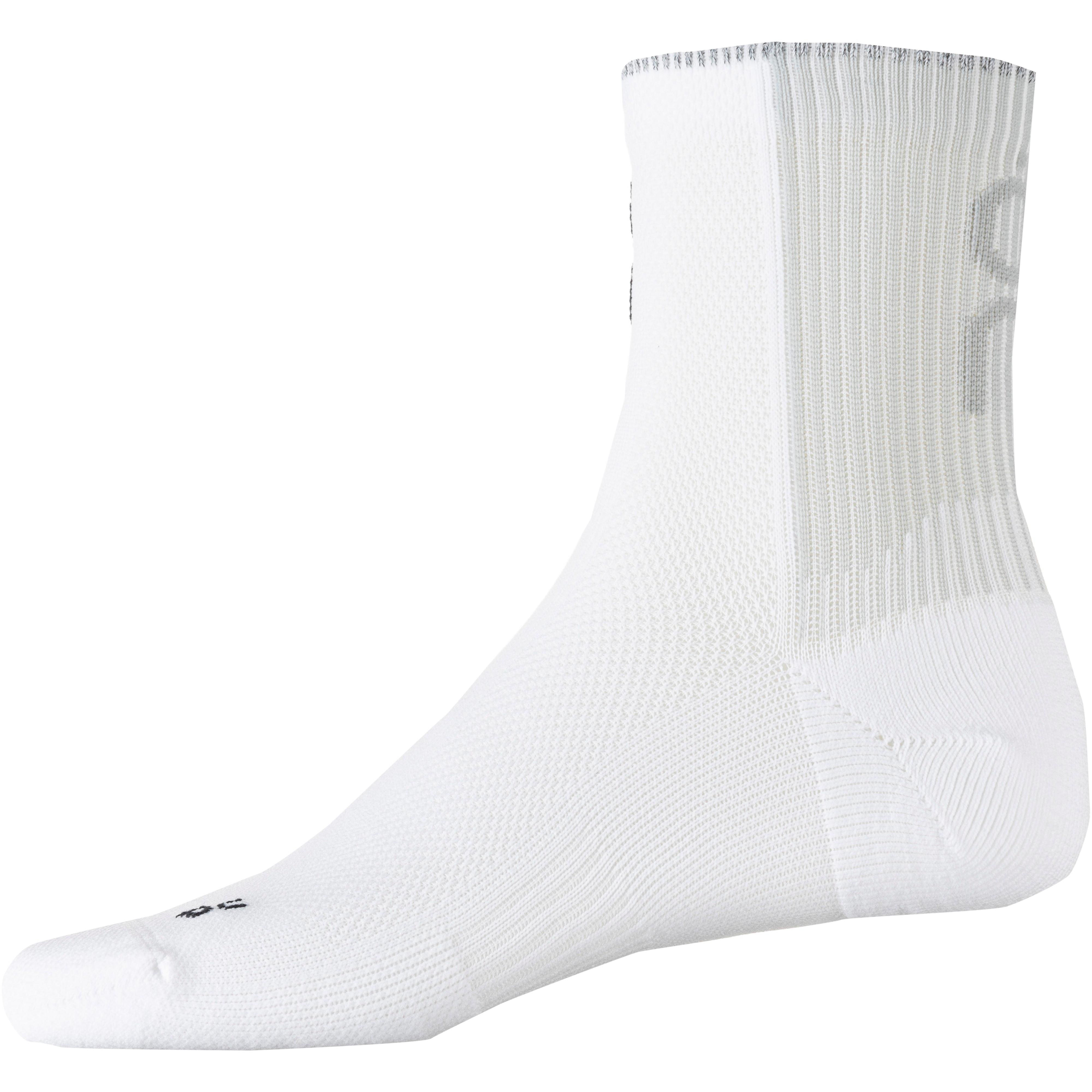 Unisex Laufsocken mit atmungsaktiver und schweißableitender Funktion; die strategisch platzierten Belüftungsbereiche sorgen für angenehme Ventilation während des Laufs; anatomische Rechts- Linkspassform; nahtloser Zehenbereich für reibungsarmen Tragekomfort; dämpfende Polsterung im Fersenbereich; Material 93% Polyamid, 6% Elastan, 1% Polyester.