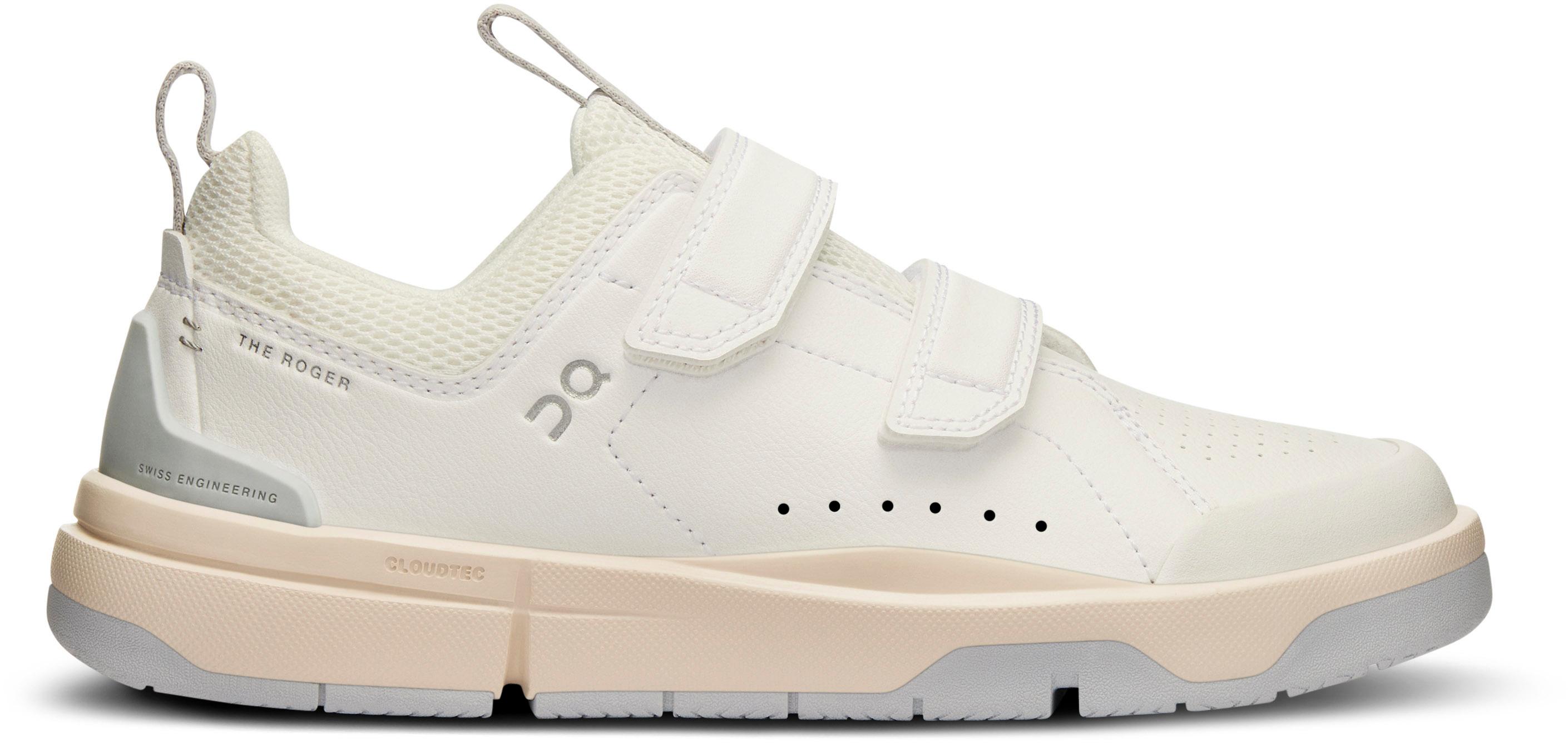 Leichte Sneaker für Kinder, designt in Zusammenarbeit mit Roger Federer; Obermaterial aus Kunstleder mit farbigen Akzenten; Zuglaschen an Ferse und Zunge für einfaches Anziehen; 2 Klettriegel; Logodetails; Perforationen zur Belüftung; weich gepolsterter Schaft aus Mesh; Textilfutter; herausnehmbare Einlegesohle; Zwischensohle mit CloudTec®-Dämpfung; integriertes Speedboard® für optimale Stabilität beim Laufen; profilierte Gummi-Außensohle.