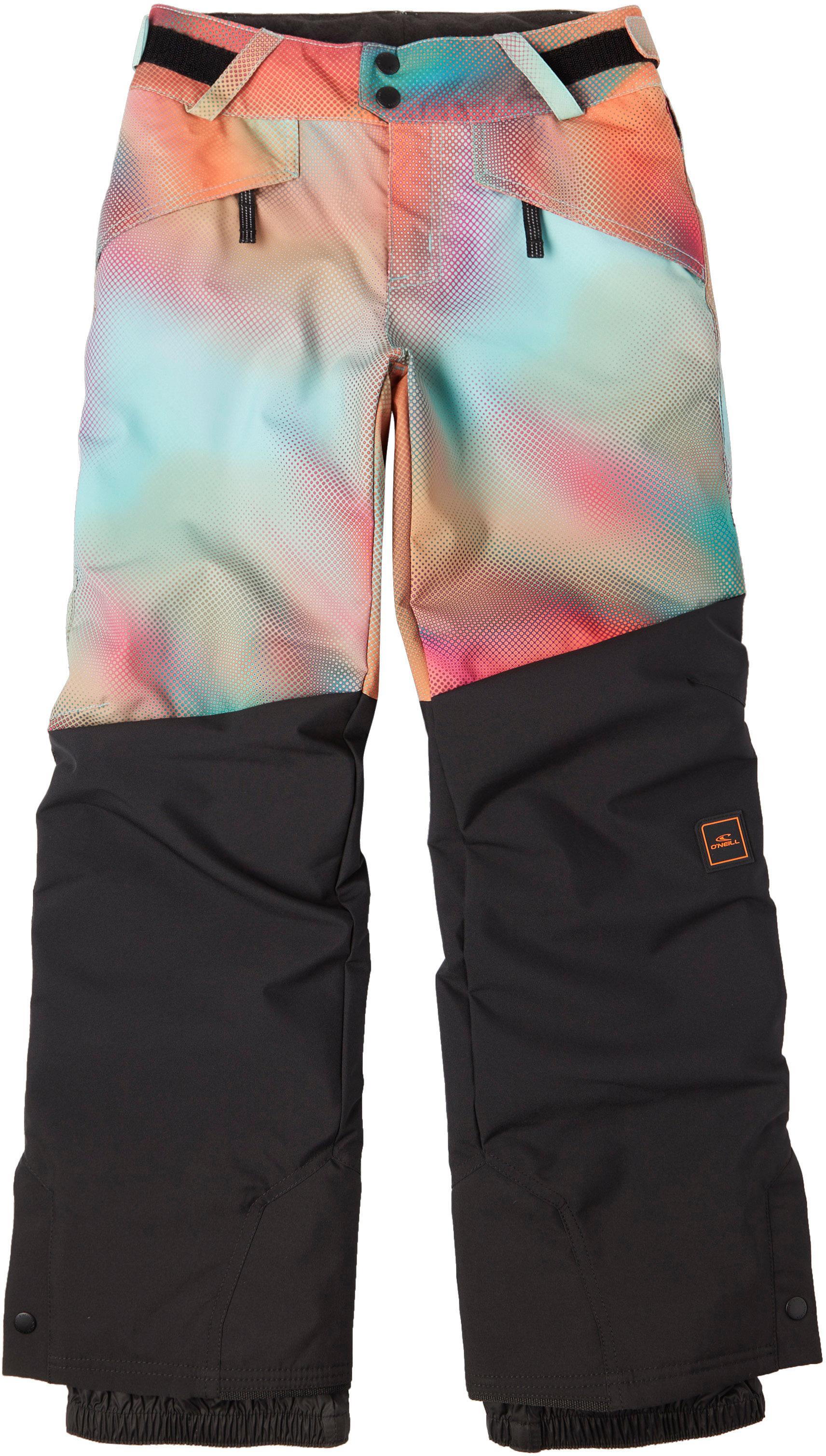 Wasserdichte und atmungsaktive Snowboardhose mit versiegelten Nähten an kritischen Stellen; grafischer Print; Bund mit Gürtelschlaufen, 2 Druckknöpfen und Klettriegeln zur Weitenverstellung; 2 Reißverschlusstaschen; vorgeformte Knie; Beinabschlüsse mit seitlicher Druckknopfleiste und integrierten Gamaschen; Material 100% Polyester (davon 50% recycelt).