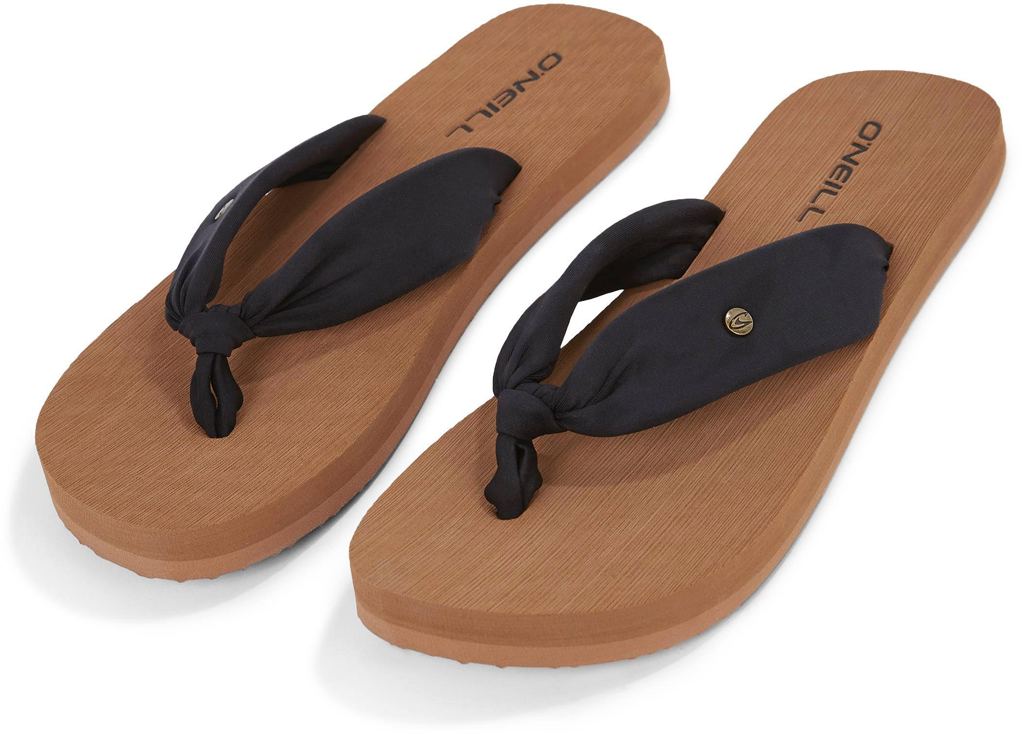 Zehentrenner mit Logodetail am Fußbett; Textilriemen mit Recyclingmaterial und Knotendetail; Fußbett und Mittelsohle aus EVA mit kontrastfarbener Zwischenschicht; Außensohle aus EVA und Gummi.