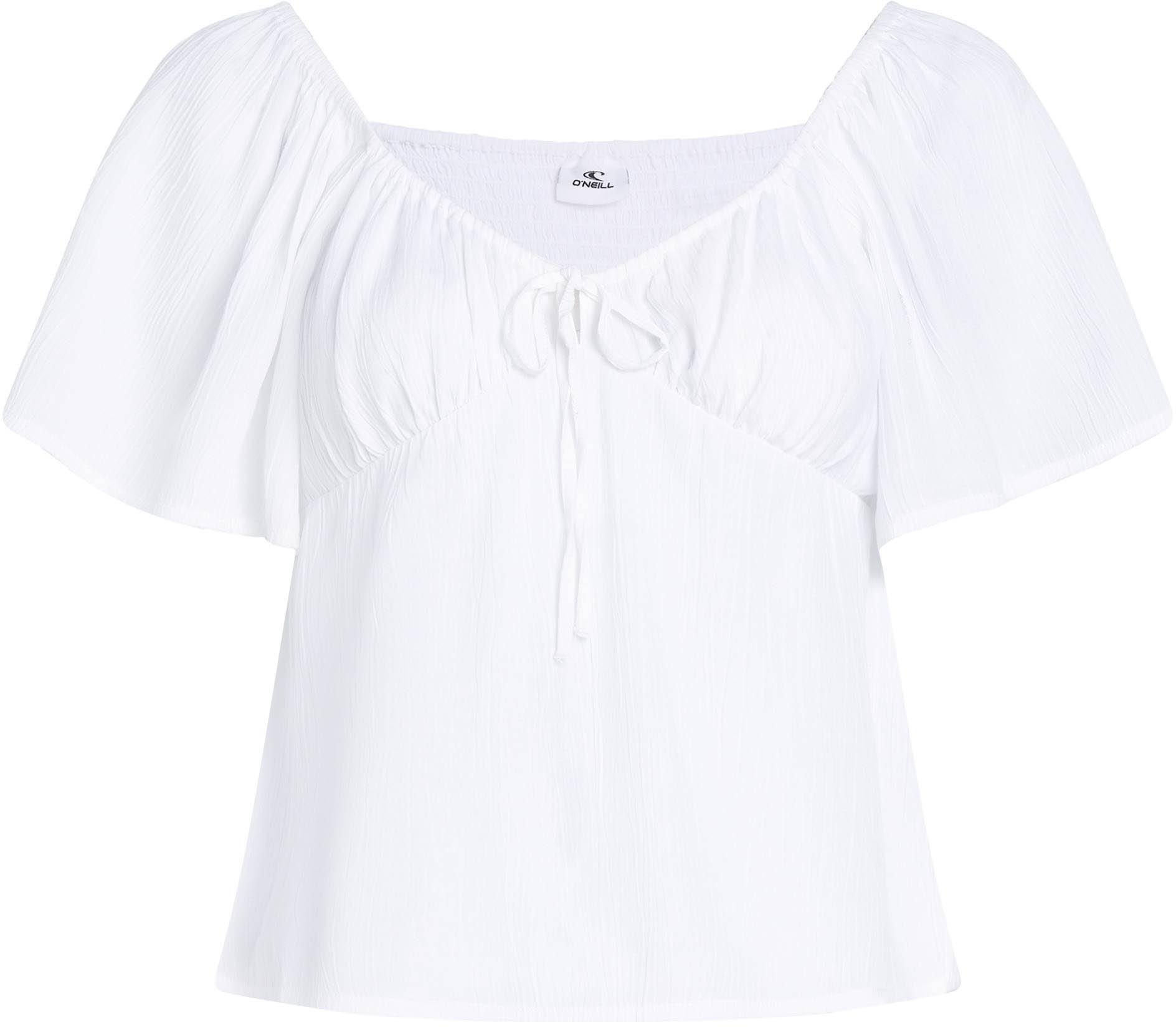 Blusentop mit weitem Ausschnitt und definiertem Dekolletee mit Bändchen für eine feminine Silhouette; aus umweltfreundlich hergestellter Livaeco™-Viskose; lockere Schmetterlingsärmel; Gummizug an Schultern und Ausschnitt; gesmoktes Rückenteil; Material 100% Viskose.