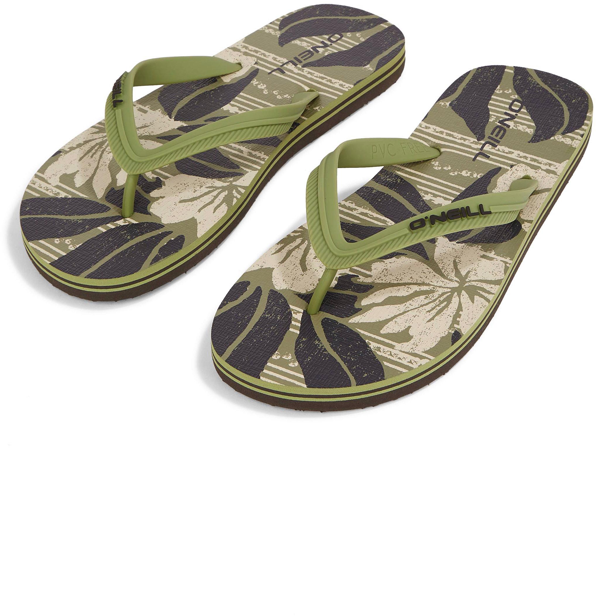 Zehentrenner mit bedrucktem Fußbett; TPU-Riemen mit Logoprägung; Sohle aus Polyethylen mit kontrastierender Zwischenschicht.