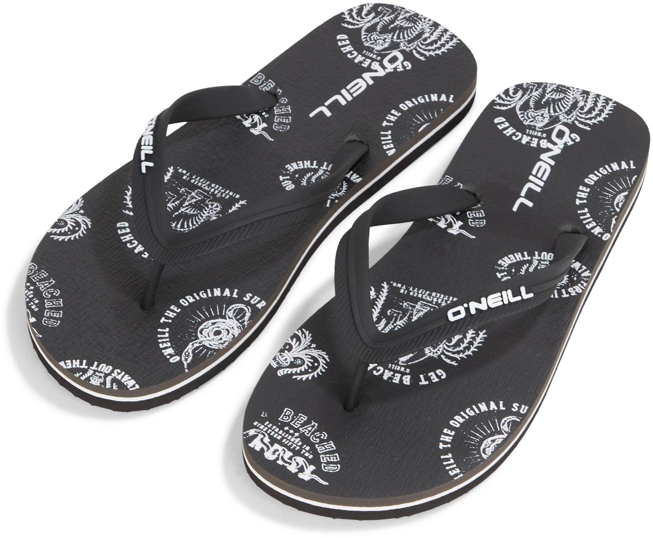 Zehentrenner mit bedrucktem Fußbett; TPU-Riemen mit Logoprägung; Sohle aus Polyethylen mit kontrastierender Zwischenschicht.
