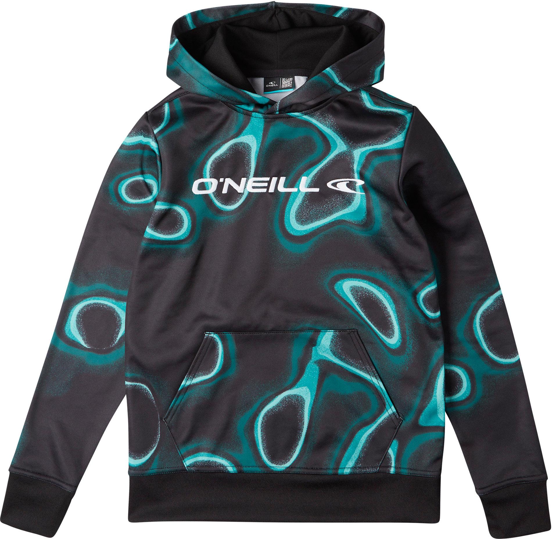Fleecehoodie mit grafischem Allover-Print und Markenschriftzug auf der Vorderseite; Kängurutasche, elastische Rippbündchen; Material 100% Polyester (davon 65% recycelt).