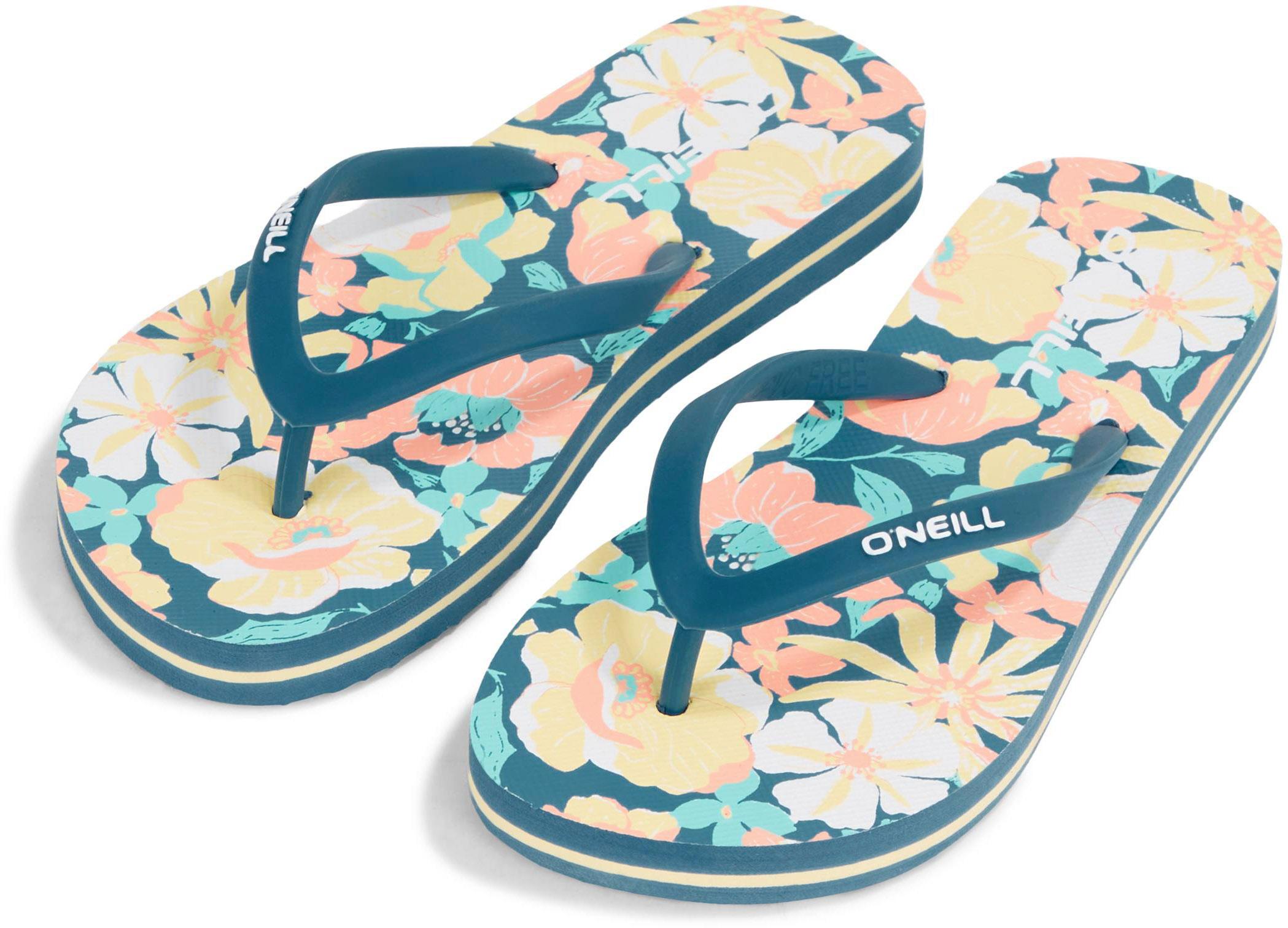 Leichte Zehentrenner mit floralem Print auf dem Fußbett; Markenprint am Kunststoff-Riemen; Außensohle aus Kunststoff.