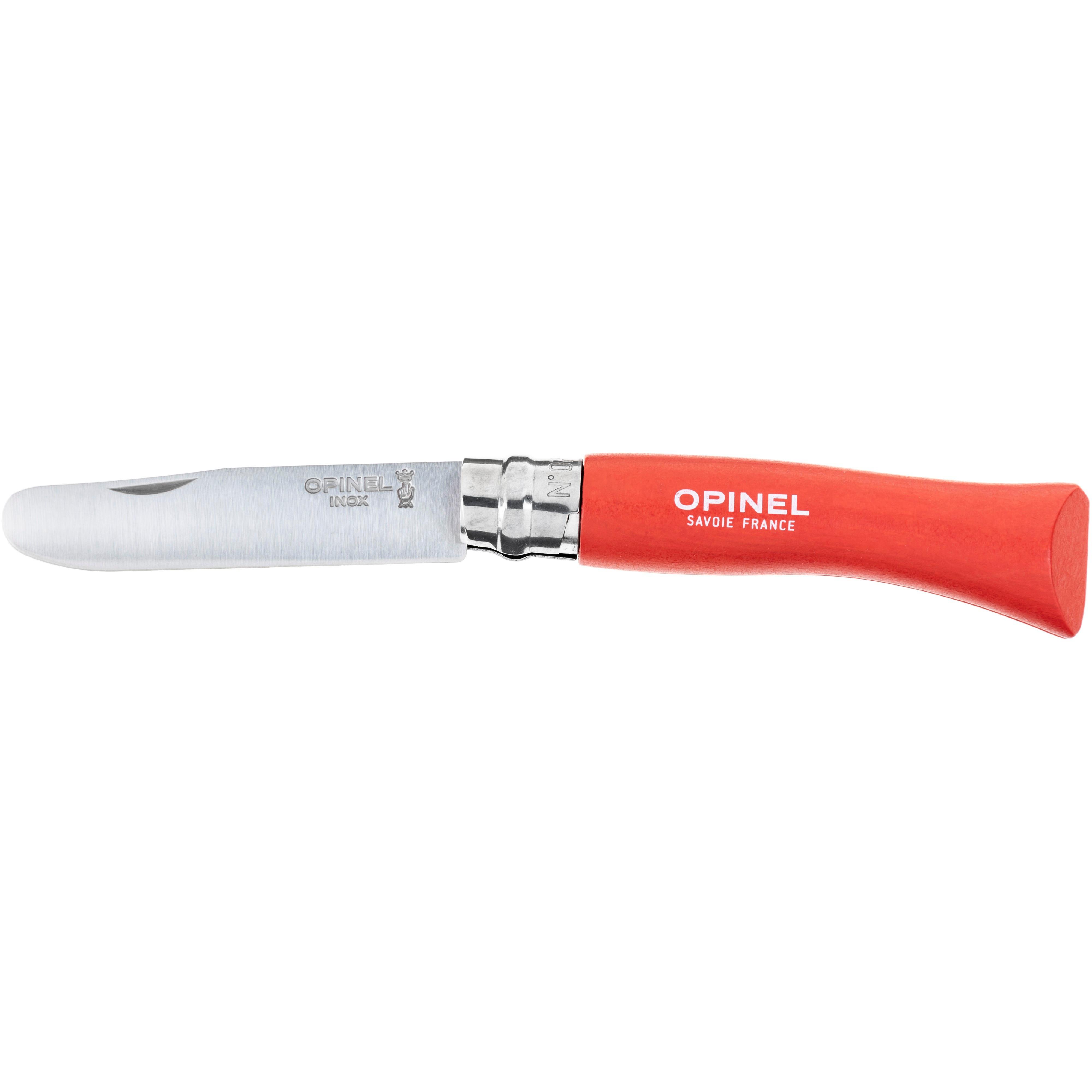 Abgerundetes Taschenmesser für Kinder, geeignet fürs Picknick oder Bastelarbeiten; drehbarer Sicherungsring; Klingenlänge: ca. 8 cm; Made in France.