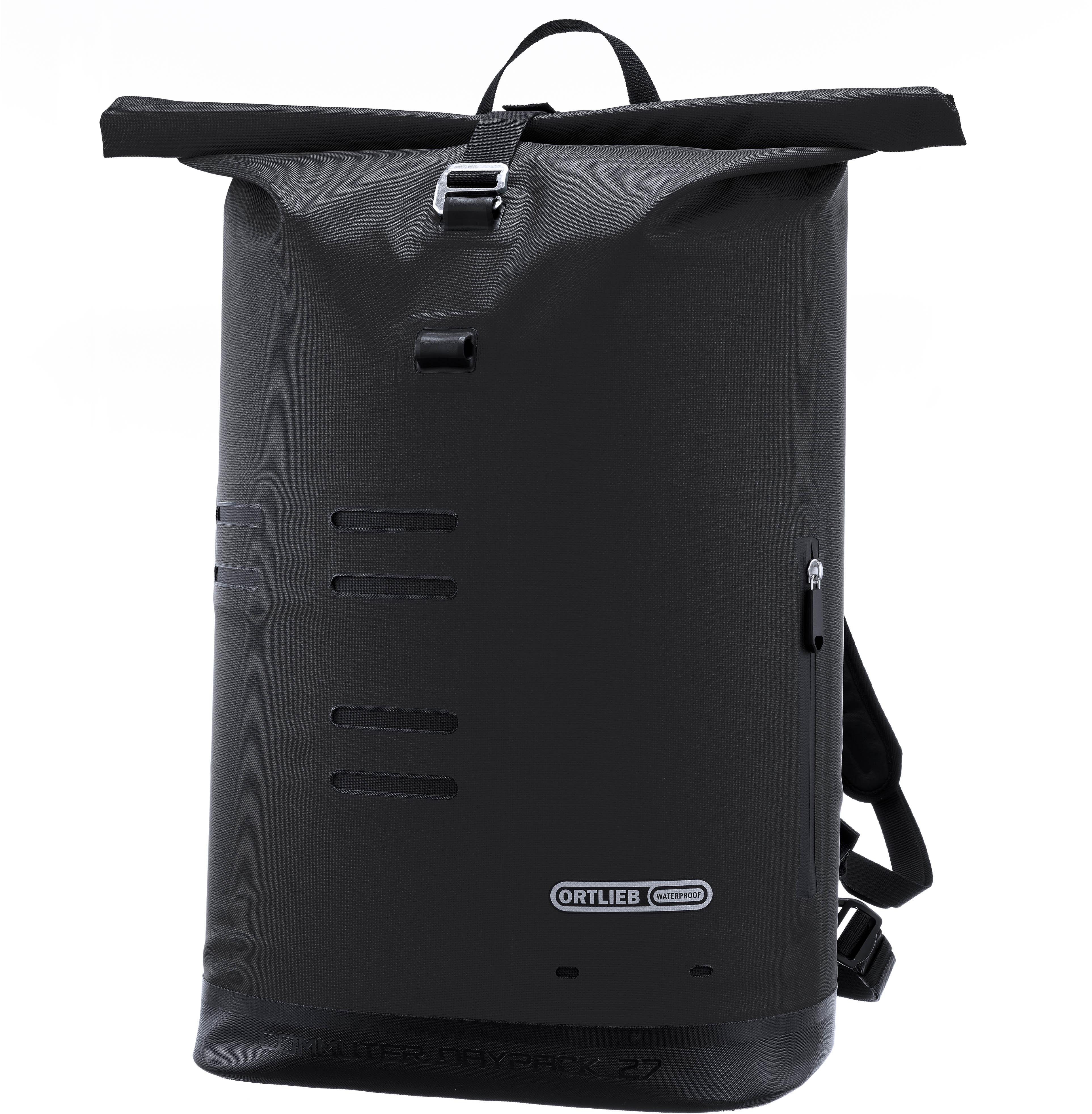 Wasserdichter Daypack aus leichtem, strapazierfähigen Nylongewebe mit PU-Beschichtung; geräumiges Hauptfach mit Rollverschluss und Haken; gepolstertes Laptopfach; Fronttasche mit Reißverschluss (nicht wasserdicht); verstärkter Boden; gepolsterter Rücken mit Ventilationskanälen; ergonomische Schulterträger; abnehmbarer Brust- und Hüftgurt; Tragegriff an der Oberseite; Schlaufe zur Befestigung von Rücklicht und Bügelschloss; reflektierende Details; Volumen: 27 l; Maße (H/B/T): ca. 50 x 32 x 21 cm; Gewicht: ca. 800 g; Zuladung: 8 kg; Made in Germany.