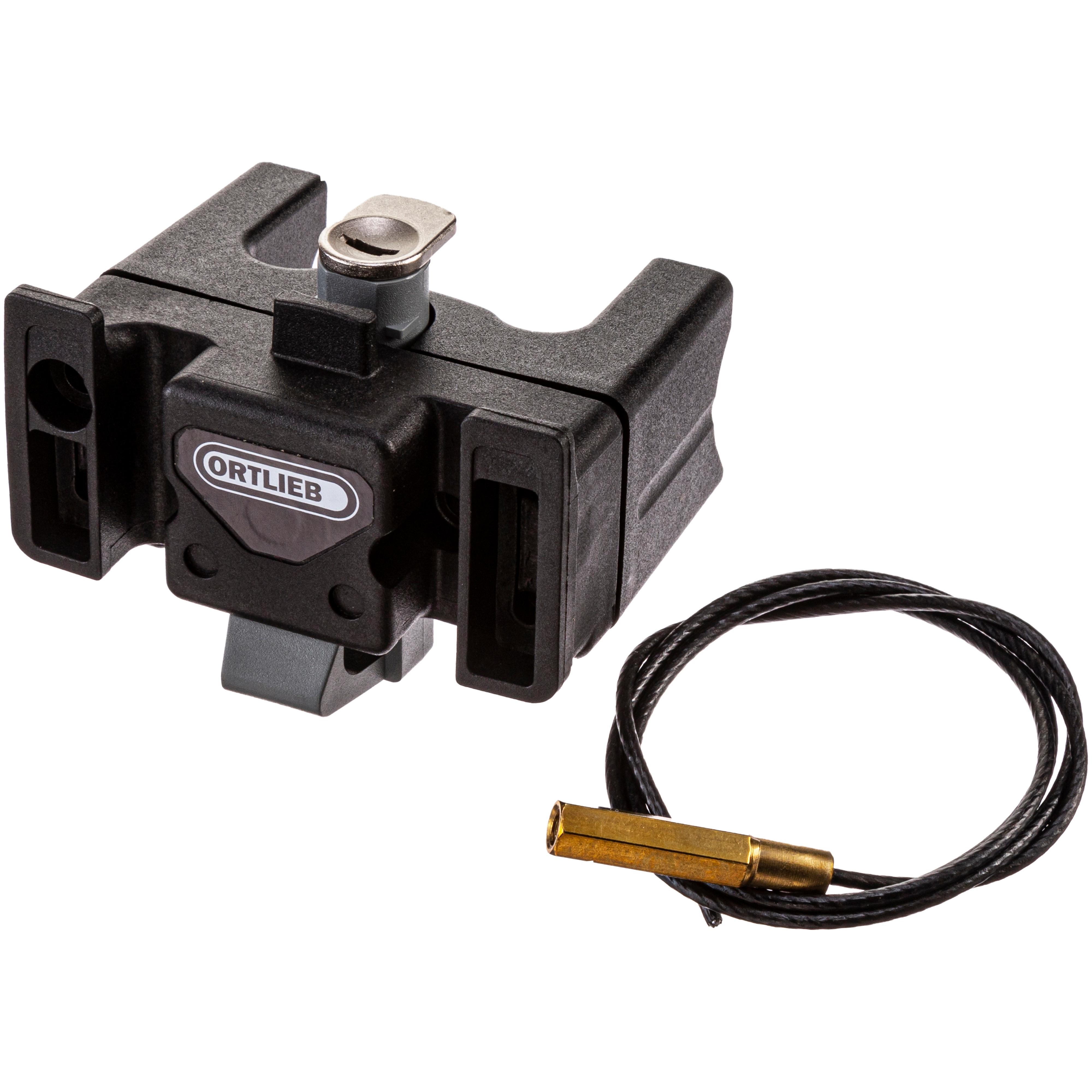 ohne PFC hergestellte Halterung für alle Ultimate Six Modelle, Barista, Velo-Pocket und Handlebar Basket geeignet; Lieferumfang: 1 abschließbarer Montageblock inkl. Drahtseil und Schrauben und 2 Schlüssel.
