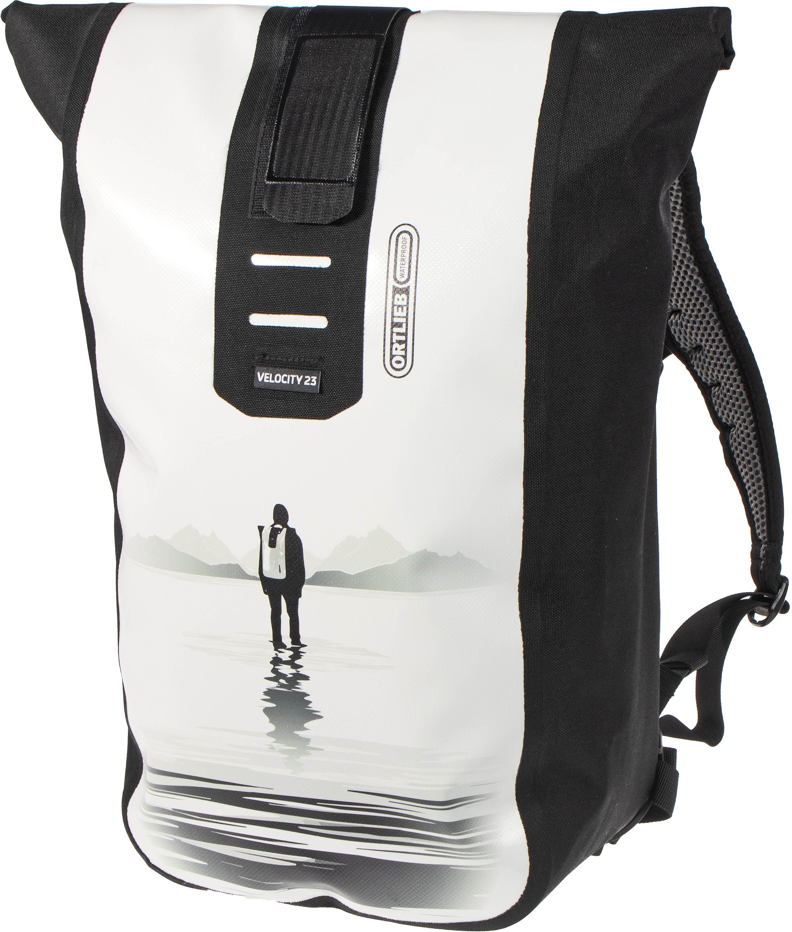 Daypack aus wasserdichtem Material; geräumiges Hauptfach mit Rolltop und Klettverschluss; zusätzliches Reißverschlussfach innen; gepolstertes Laptopfach (ca. 36 x 24,5 x 2,5 cm); Halterung für Rücklicht oder Helm; ergonomische, gepolsterte Schulterträger; Schaumpolster am Rücken; abnehmbarer Brust- und Hüftgurt; Tragegriff an der Oberseite; Taschenboden mit Kantenschutz und Abstellfüßen; reflektierende Details; robustes Polyestergewebe mit PVC-Beschichtung; Maße (H/B/T): ca. 50 x 30 x 16 cm; Volumen: 23 l; Gewicht: ca. 880 g; Zuladung: 10 kg; Made in Germany.
